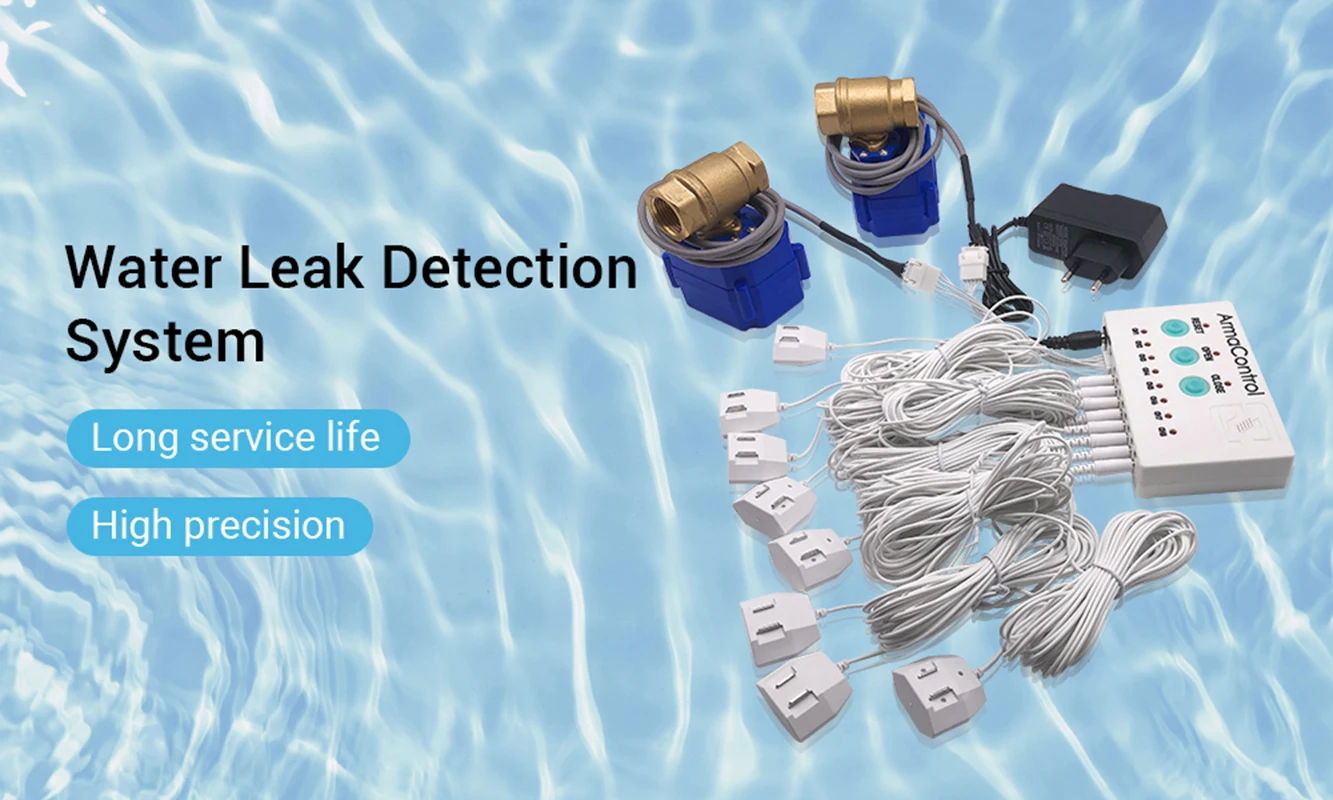Система сигнализации с датчиком воды WLZ 808 с клапаном DN15 * 2 шт. и 4 шт. 6-метровыми кабелями для защиты от перелива воды
