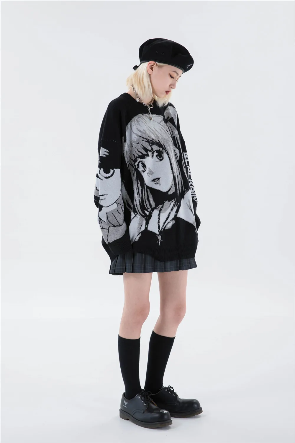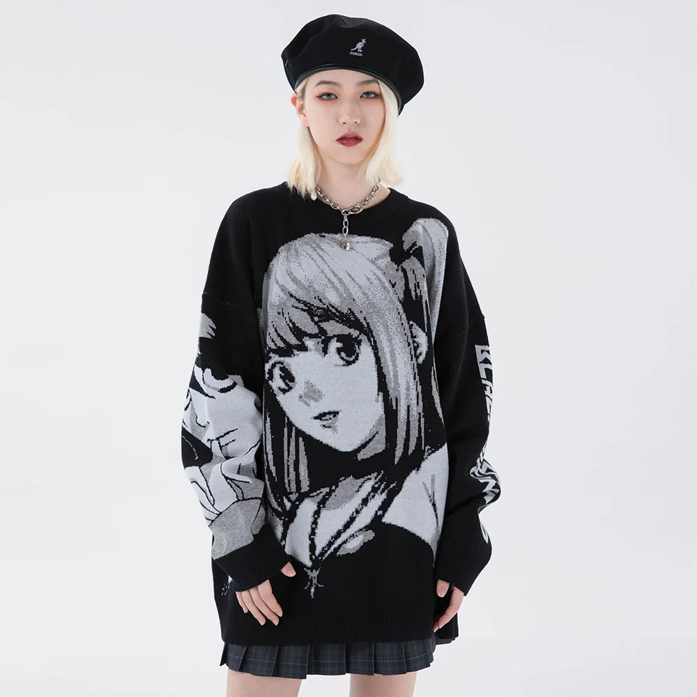 Вязаный свитер в стиле аниме для девочек, мужской уличный свободный...