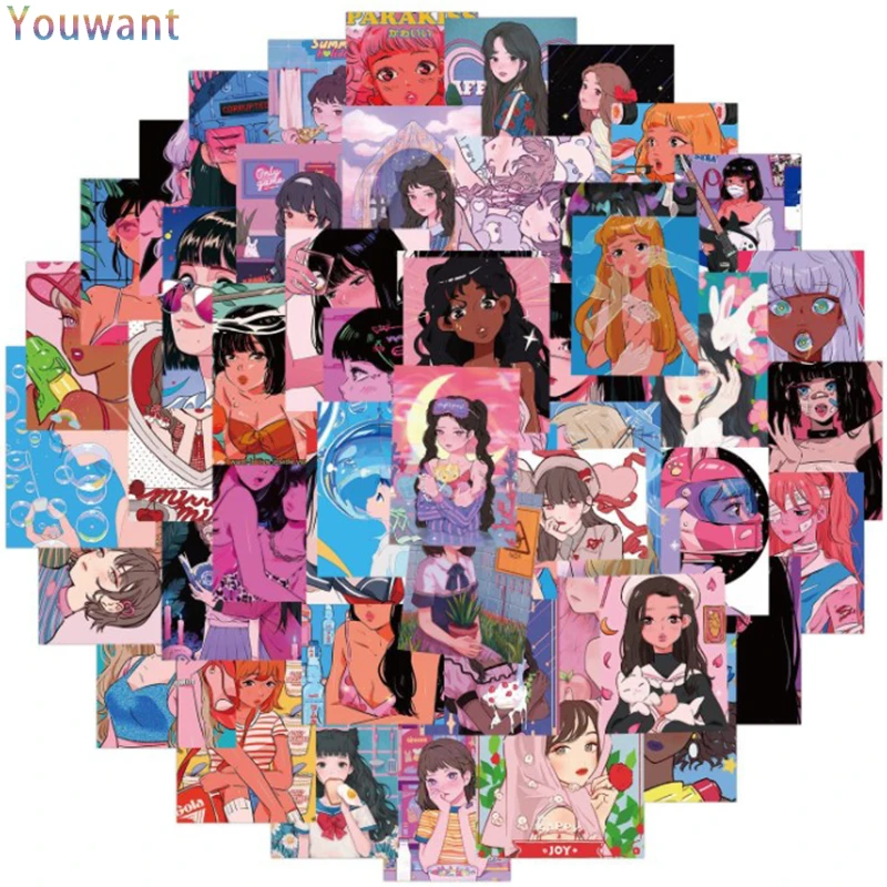 50 шт. Красивые стикеры для милой девушки аниме Otaku бонусы иллюстрация для телефона ноутбука чемодана чехла граффити стикеры наклейки