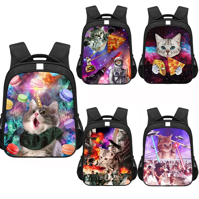 Школьный рюкзак с животными кавайным котенком, милый студенческий рюкзак с кошкой и пиццей, Большой Вместительный рюкзак для детского сада, сумка для книг для мальчиков