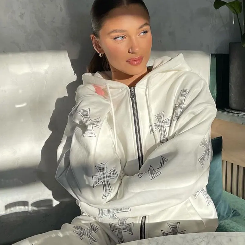 Женские спортивные костюмы из 2 предметов Y2K Стразы толстовка с пе...