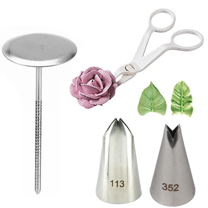 4 шт.компл. 2 листа Кондитерская Роза цветочная Насадка + 1 кондите...