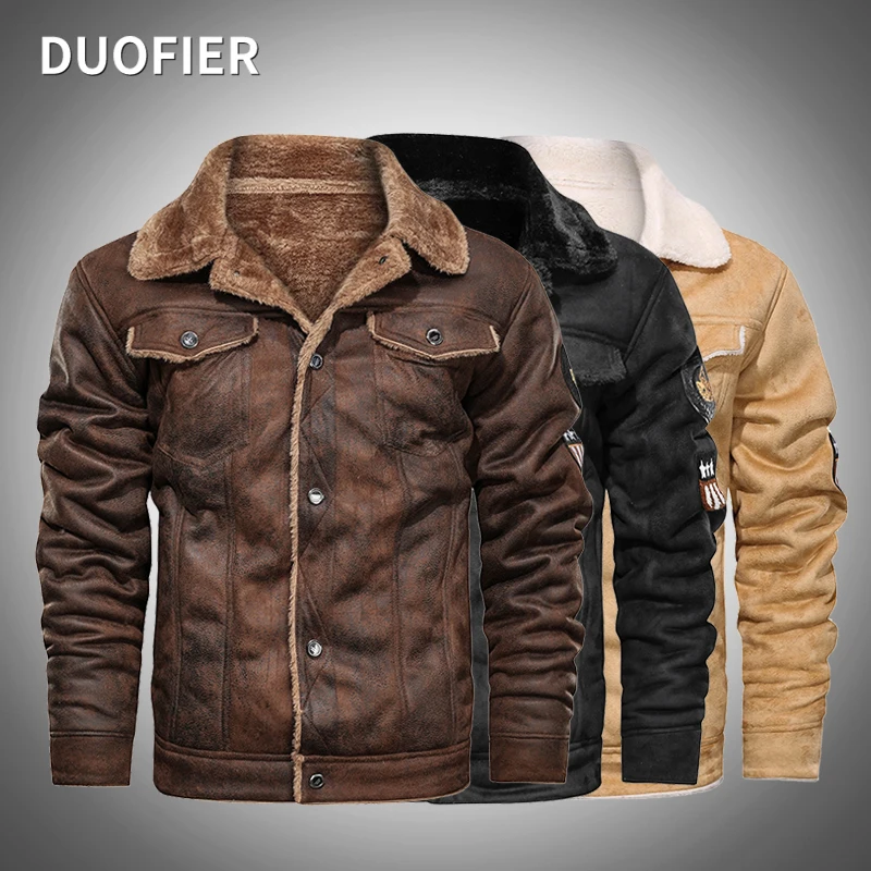 Мужская замшевая куртка с отложным воротником, винтажная байкерская куртка из искусственной кожи, Повседневная Верхняя одежда для зимы, 2021
