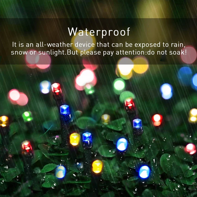 Гирлянсветильник на солнечной батарее, 50100200 светодиодов, 8 режимов, водонепроницаемая, для сада, свадьбы, вечеринки, рождественской елки