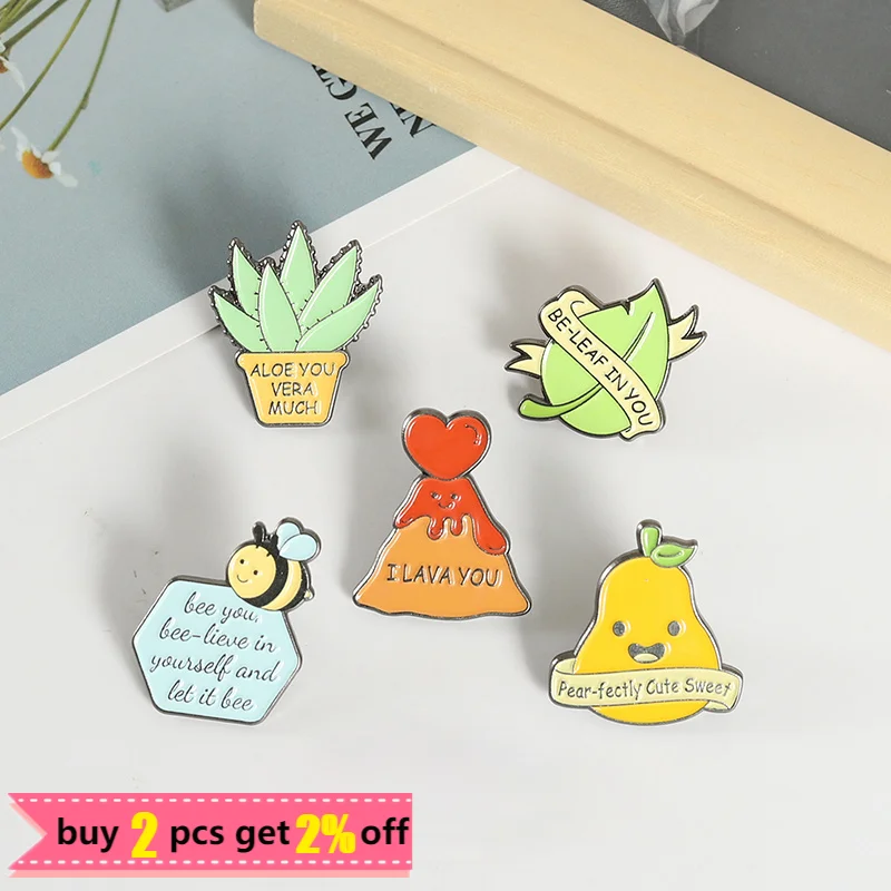Броши с эмалью в виде груши, сердца, вулкана, милой пчелы, значок, Милые Броши для женщин, рюкзаков, булавка на лацкан, металлическое ювелирное изделие, подарок