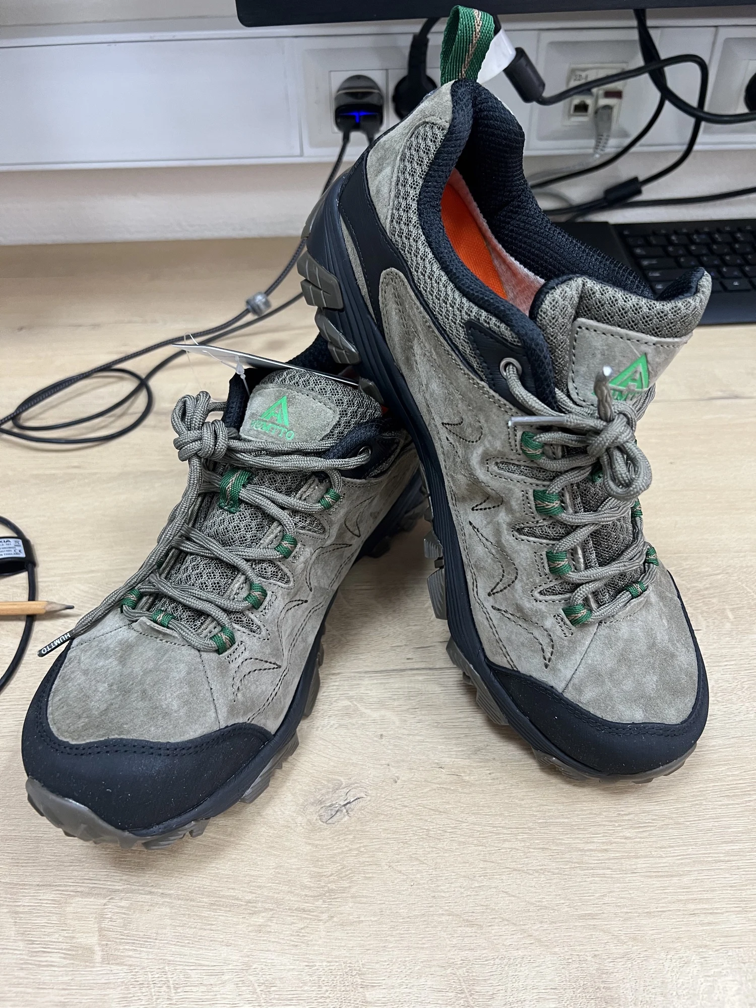 Только получил и вот распаковал примерил. Что сказать, ботинки на свои деньги. Мне понравились. Выглядят как ботинки, по ощущениям как кроссовки. Они подойдут для несложных походов или для прогулок по парку. У меня 46 размер ноги, брал самый большой размер и мне налезли как раз. Только я взял дополнительно поменял здесь стельки на ортопедические и взял трекинговый носок, теперь подошва стала жёсткой и стало ваще удобно. Если не поменять здесь стельку, то нога будет болтаться как субстанция в проруби