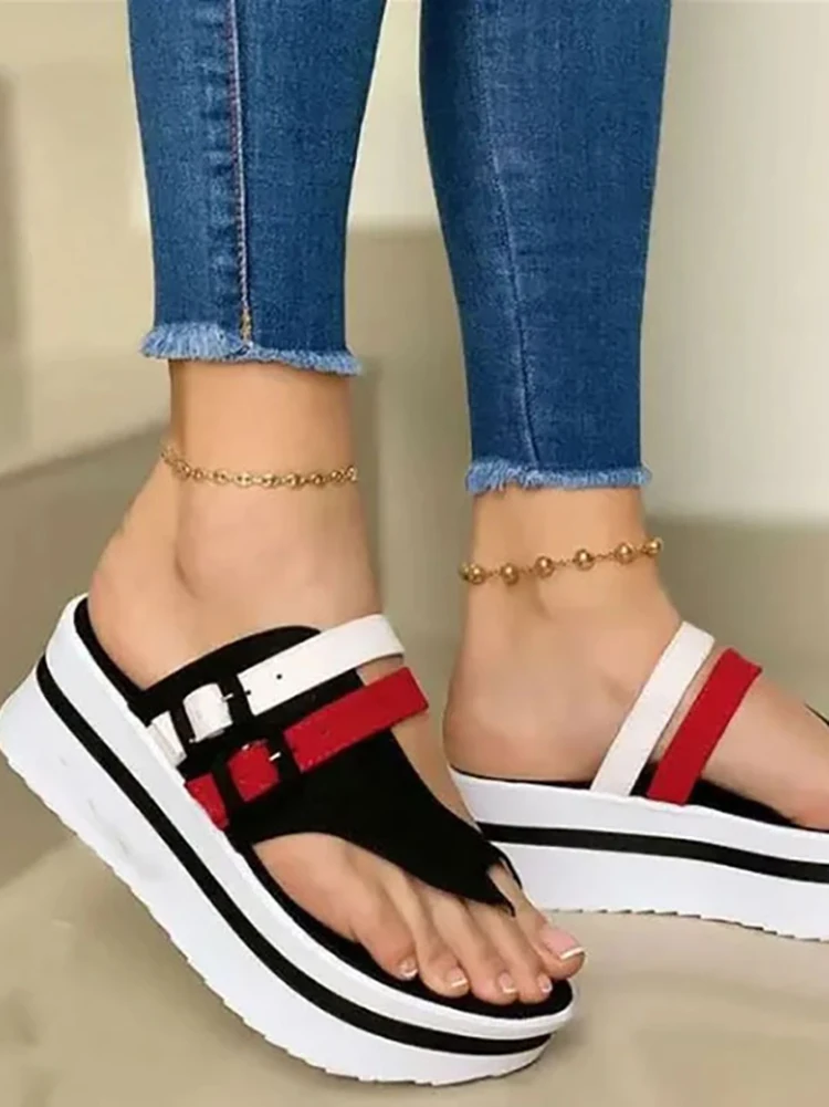 Летние сандалии; Модные женские пляжные повседневные вьетнамки на танкетке; Женская обувь на платформе с носком; Женские босоножки с пряжкой и ремешком на пятке