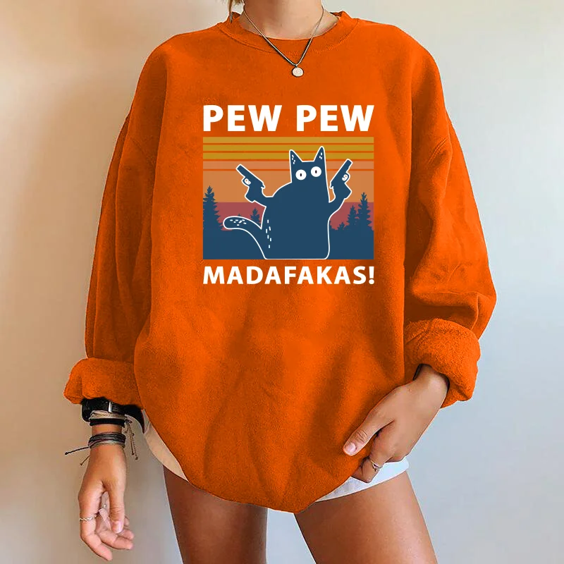 Pew Pew Madafakas Cat Funny Women Designer Sweatshirt