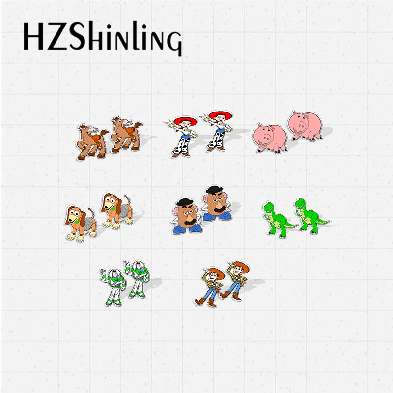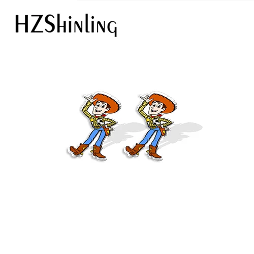 Серьги-гвоздики из эпоксидной смолы, с героями мультфильмов Базз Лайтер, ковбой, худи, динозавр, ручной работы, 2021