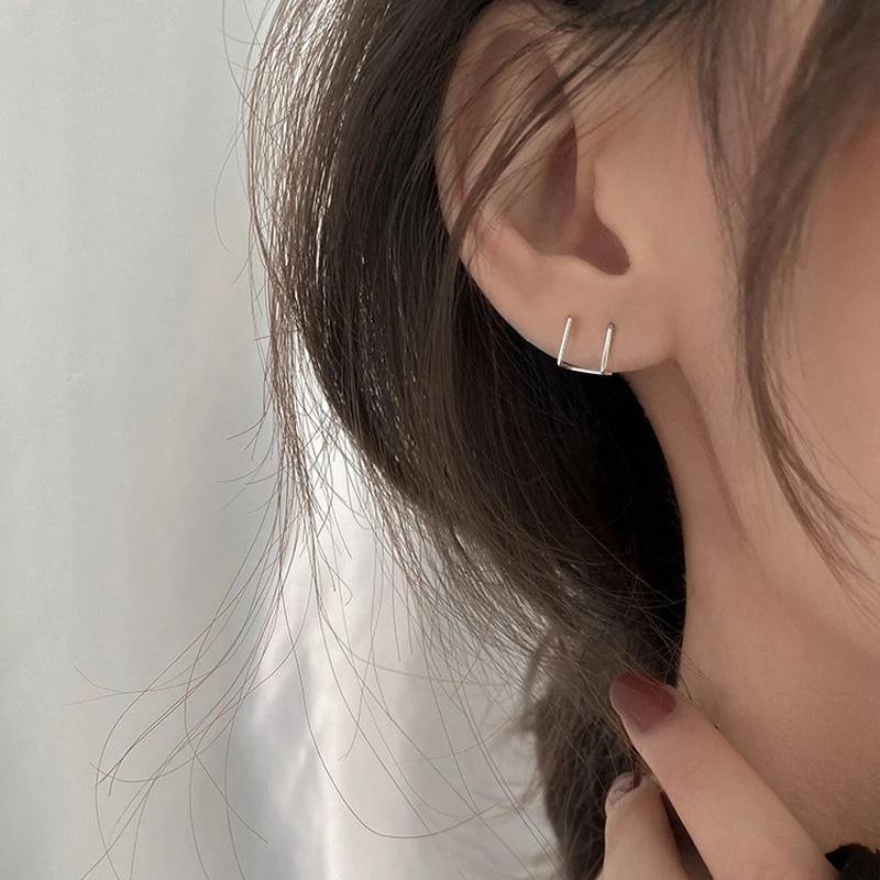 Милые небольшие серьги-гвоздики серебряного цвета для женщин крутые Геометрические Квадратные уникальные ювелирные изделия подарок корейские серьги Для Подружек