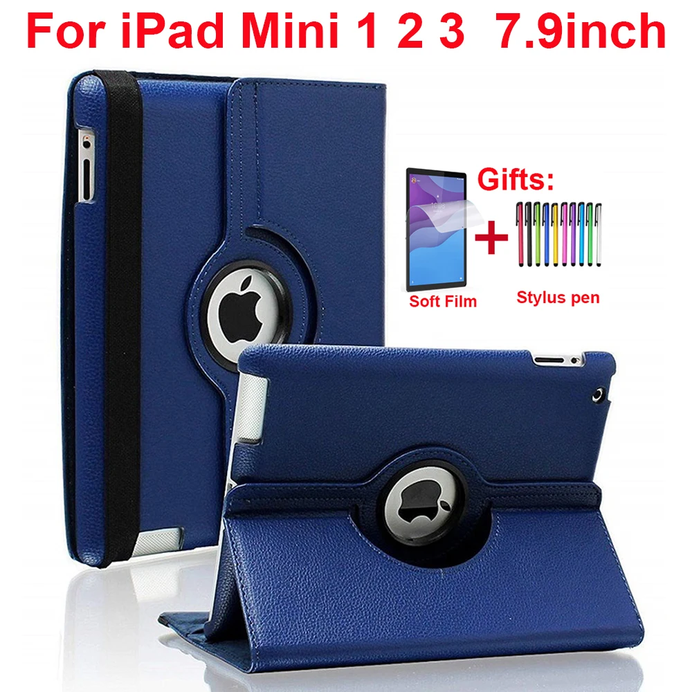 Вращающийся на 360 градусов чехол-подставка для iPad Mini 1 2 3 7,9 дюйма, умный флип-чехол из искусственной кожи для Funda iPad Mini, чехол для сна/пробужденияХарактеристики продукта:* 100% новые чехлы.* Прочный и моющийся.* Изготовлен из высококачественного материала.* Защитите от пыли, царапин и ударов* Модный дизайн, легко надеть и легко снять* Умная крышка, закрывается для сна, открывается для пробуждения.Совместимость:Для ipad Mini 1 2 3(A1432 A1454 A1455 A1489 A1490 A1491 A1599 A1600)Посылка входит:1 х защитный чехол1 стилус1 х мягкая пленка для экрана