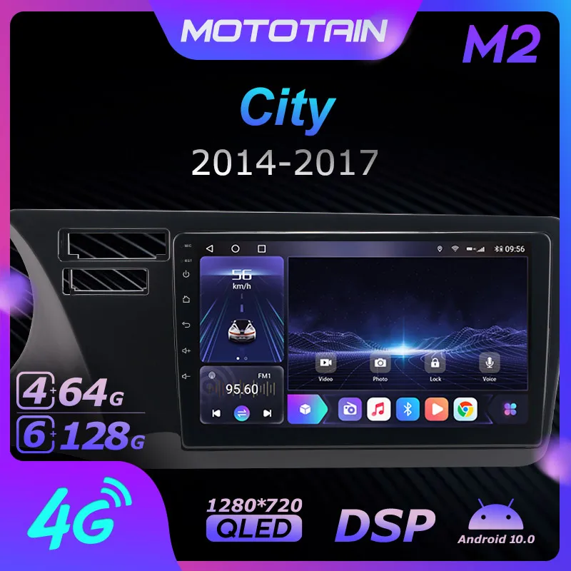 Автомобильный радиоприемник Mototain 6G + 128G Android 10,0, GPS для Honda City 2014-2017, GPS навигационная система с 4G LTE DSP SPDIF BT 5,0 1280*720