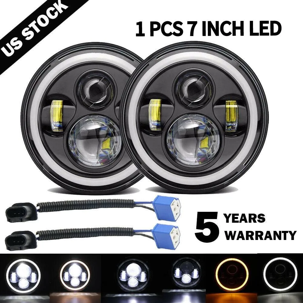 7 дюймовые светодиодный фары многофункциональные-ореол может быть белым или янтарным. Янтарь предназначен для сигнала поворота; Белый-Для DRL.