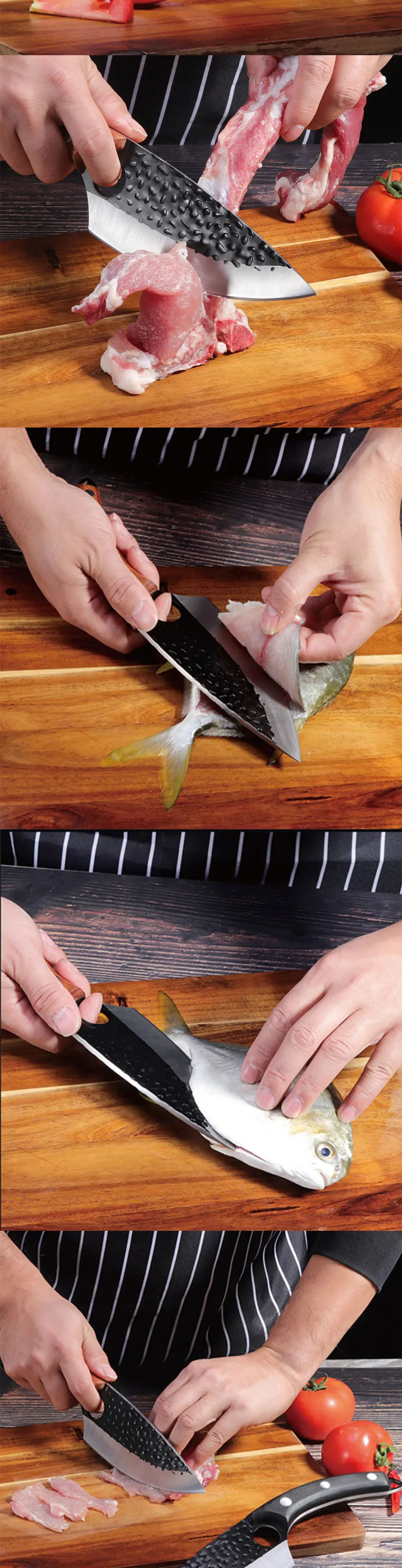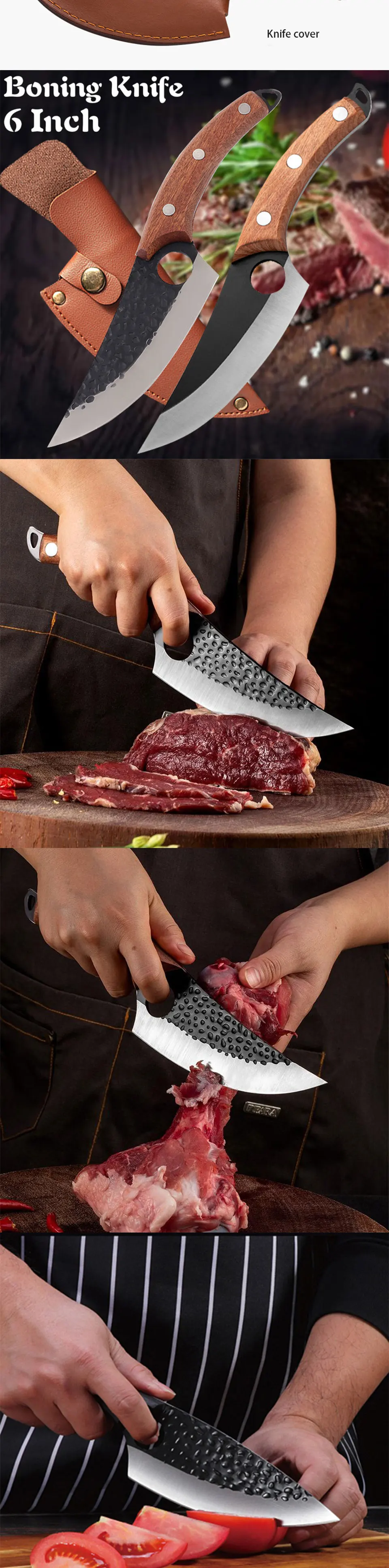 Нож ручной Кованый из нержавеющей стали, уличный резец для приготовления пищи, мяса, мясника, нарезки рыбы, мясника