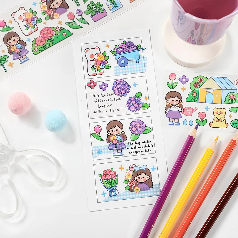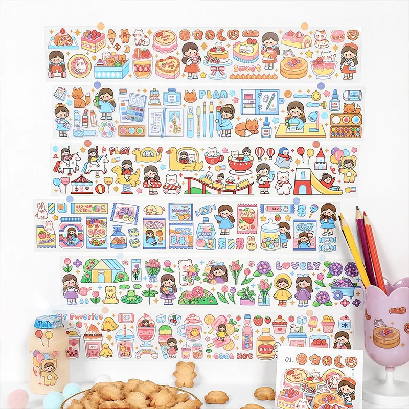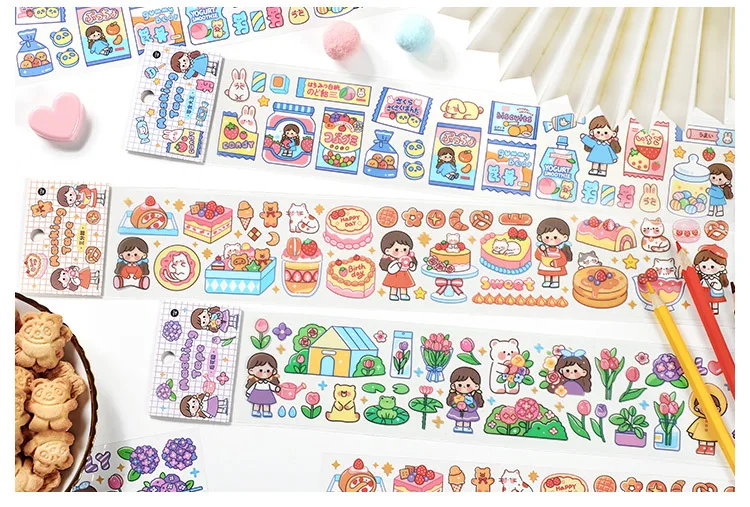 Длинная прозрачная Маскировочная лента из ПВХ, милые девушки, дневная наклейка, аксессуары для украшения
