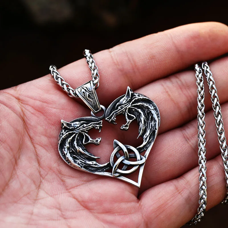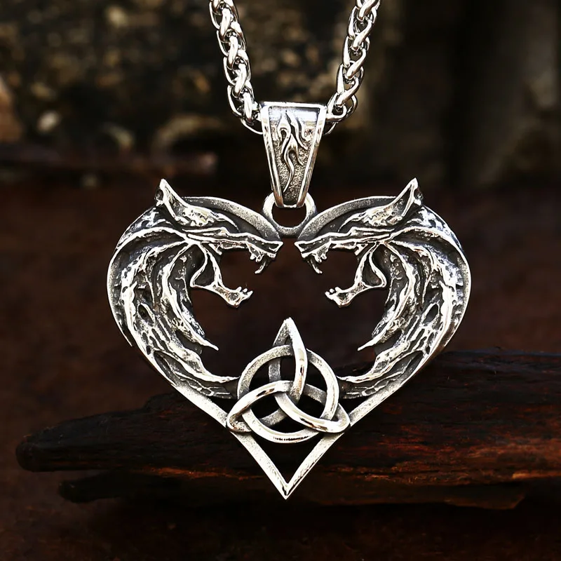 Мужской ожерелье с кулоном от BEIER, колье-чокер с двумя головами волка, подвеска в виде животного, сердце, драгоценность
