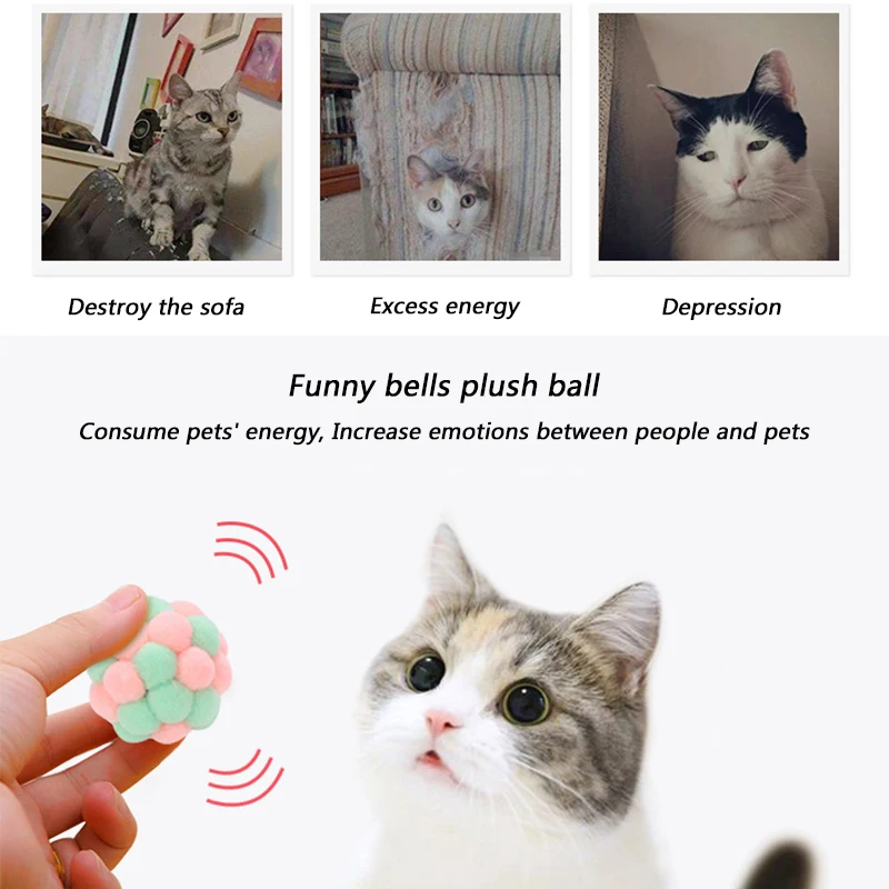 Плюшевый мяч-колокольчик ручной работы для домашней кошки, забавная...