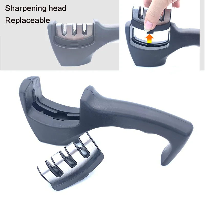 Бытовая точилка из нержавеющей стали, специальные аксессуары для кухни, алмазная Керамическая точилка для стержней, 3-секционная точилка с нескользящей основой