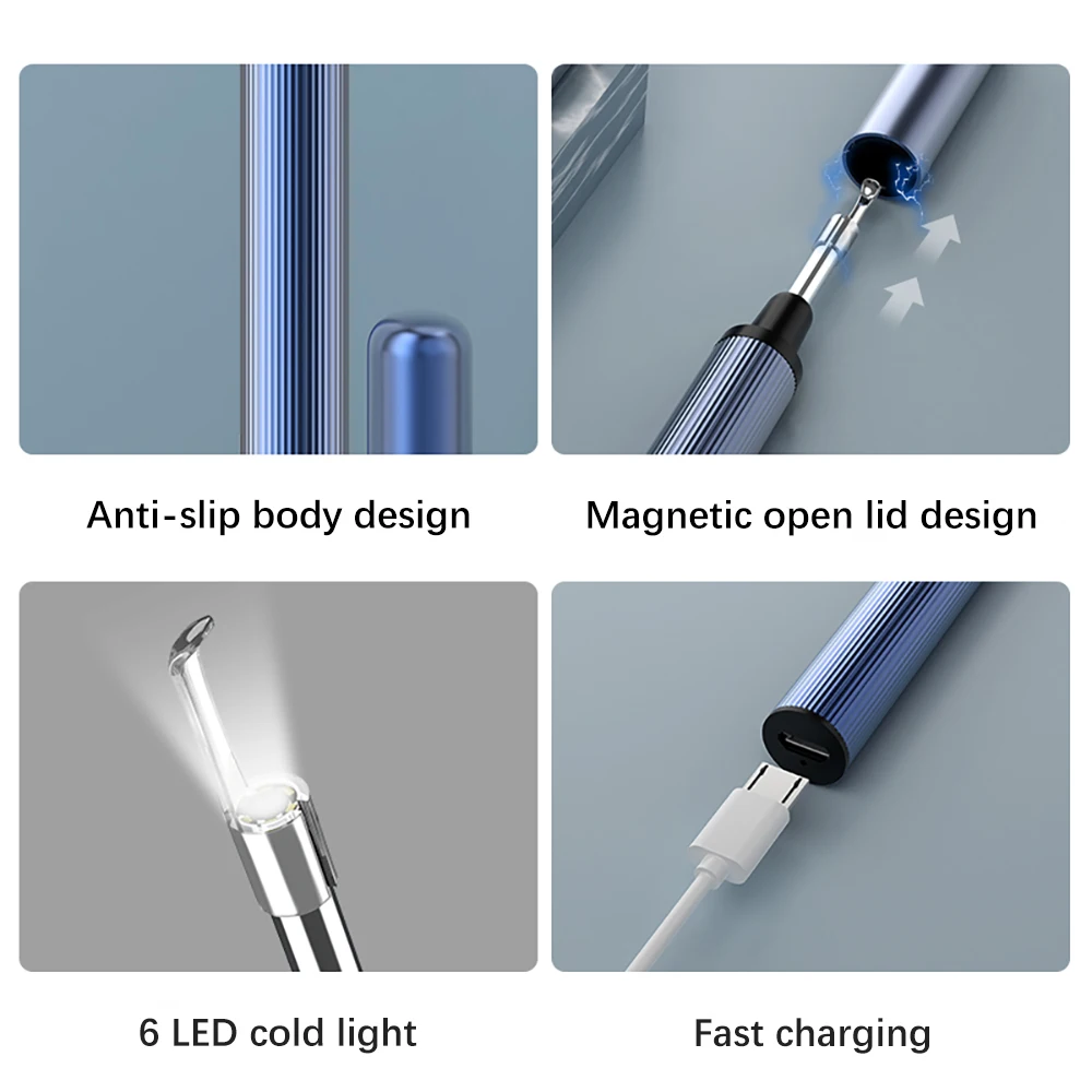 1. Эта новая версия интеллектуального беспроводного стоп-визуальная ухочистка имеет встроенный высоко-ноль датчик и шесть светодиодный холодной светильник лампы, позволяя ушной серы для того чтобы быть ясна, который обеспечивает широкий угол обзора, позволяет легко проверить и очистить ушной канал.