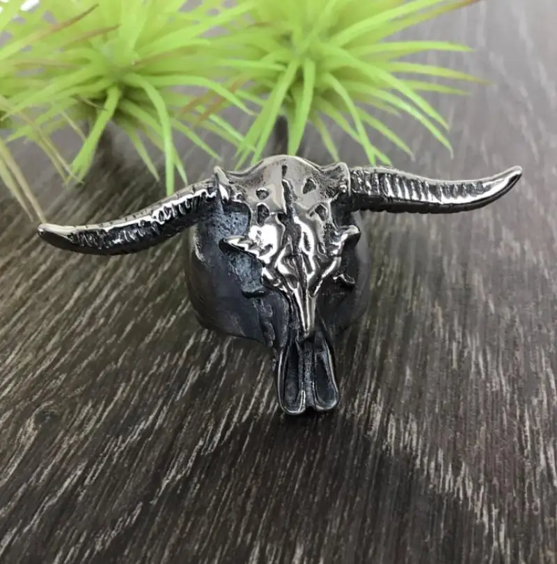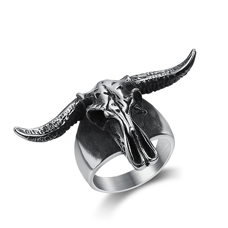 Мужское металлическое кольцо в стиле панк-рок, с головой быка и чер...