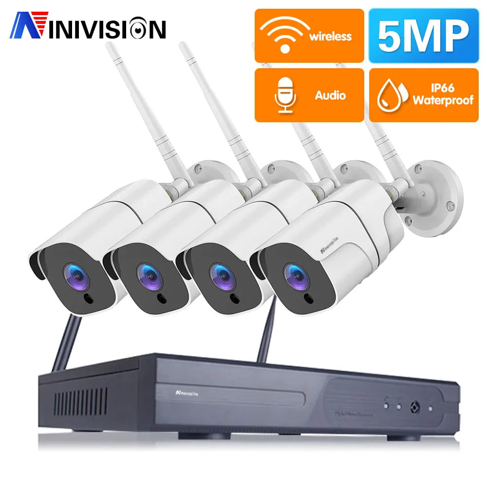 Домашняя беспроводная система видеонаблюдения, 4 канала, 5 МП, сетевой видеорегистратор, наружная водонепроницаемая IP-камера видеонаблюдения P2P, Wi-Fi, комплект видеонаблюдения с ночным видением