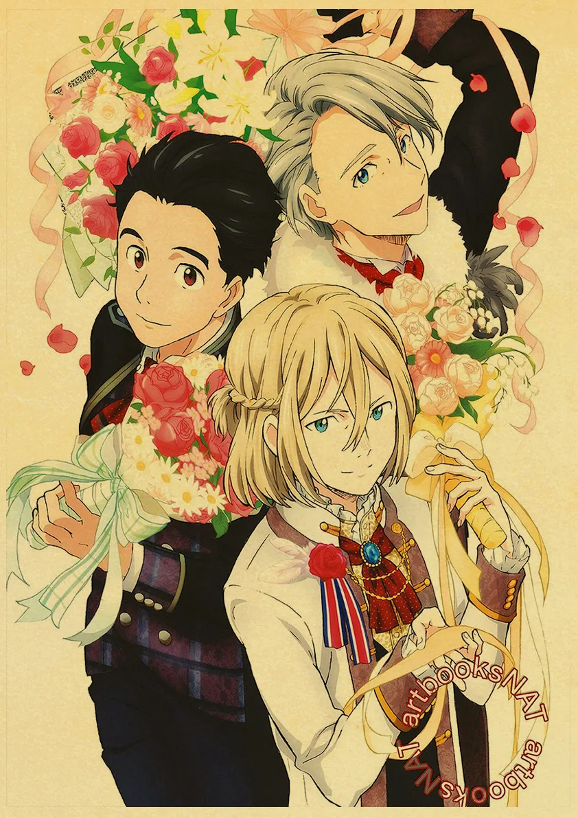 Мультяшный Юрий! Аниме постер на льду, японский мультяшный комикс, постер из крафт-бумаги, настенные наклейки, домашний декор, картина