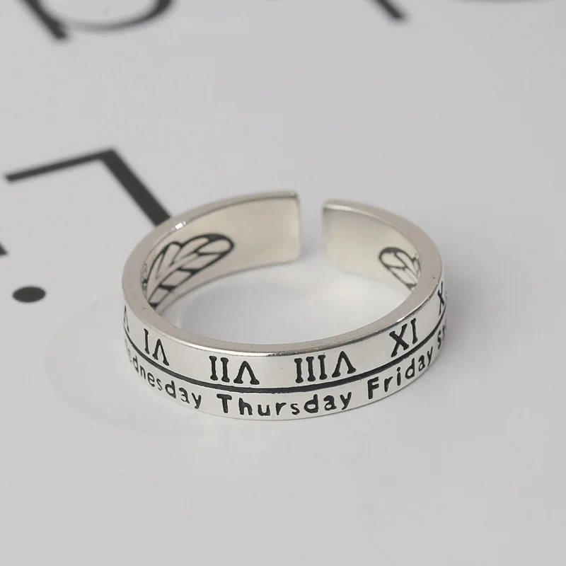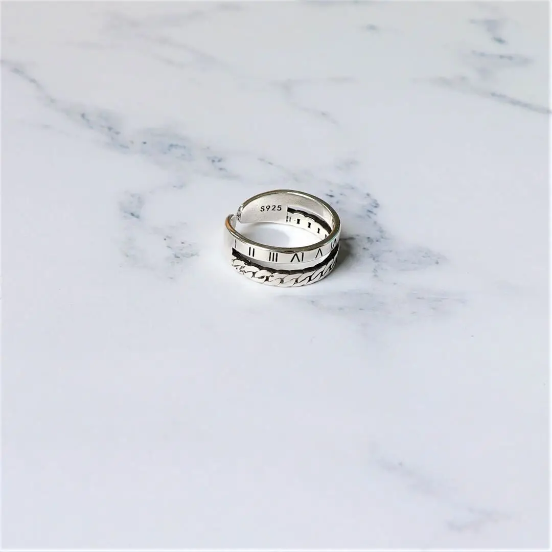 Открытое кольцо в корейском ретро-стиле с римскими цифрами
