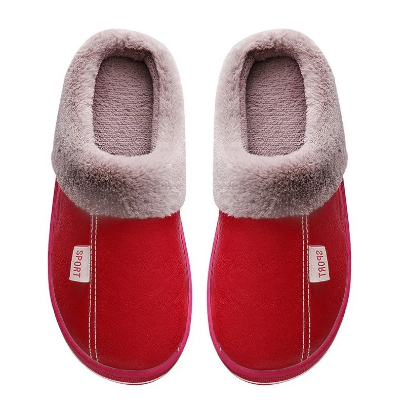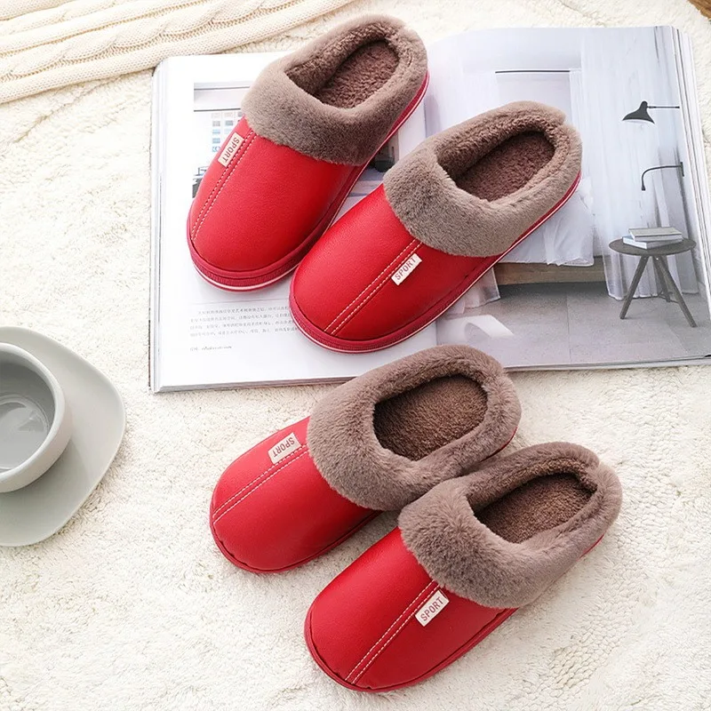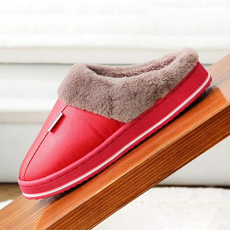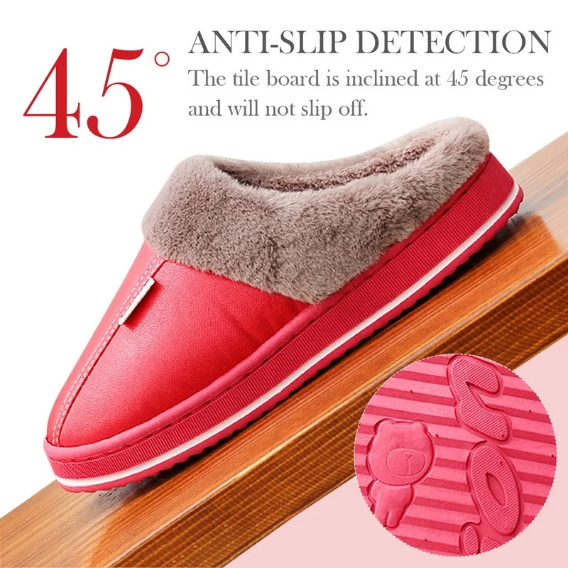 Водонепроницаемые тапочки из ПУ кожи для мужчин и женщин, зимние пл...