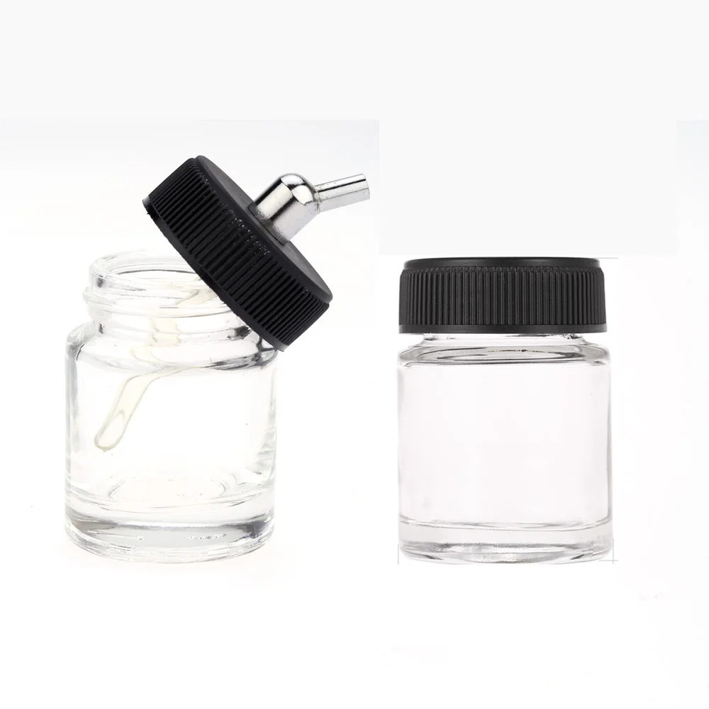 Стеклянные бутылки для аэрографа двойного действия, 1 шт., флакон для аэрографа (банки) с 30-угольным переходником, крышка в сборе