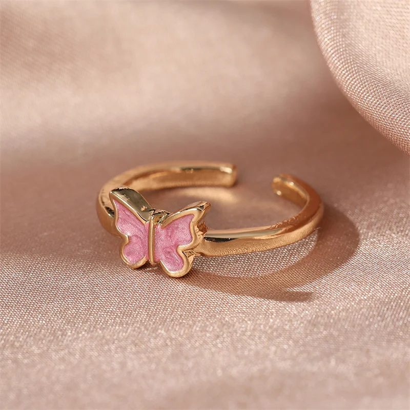 Женское кольцо с цветной бабочкой и эмалью, винтажное золотистое ак...