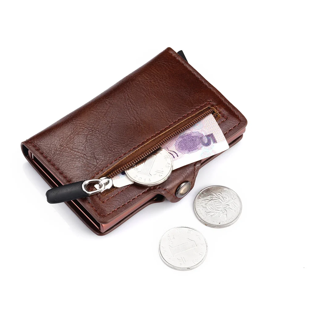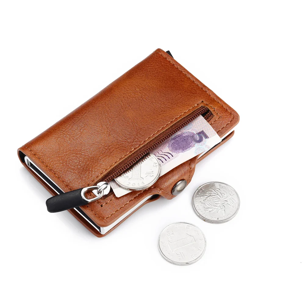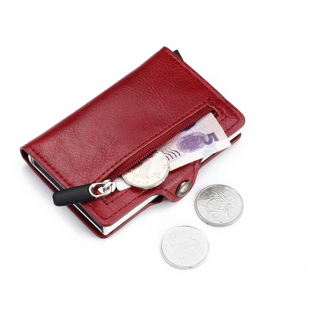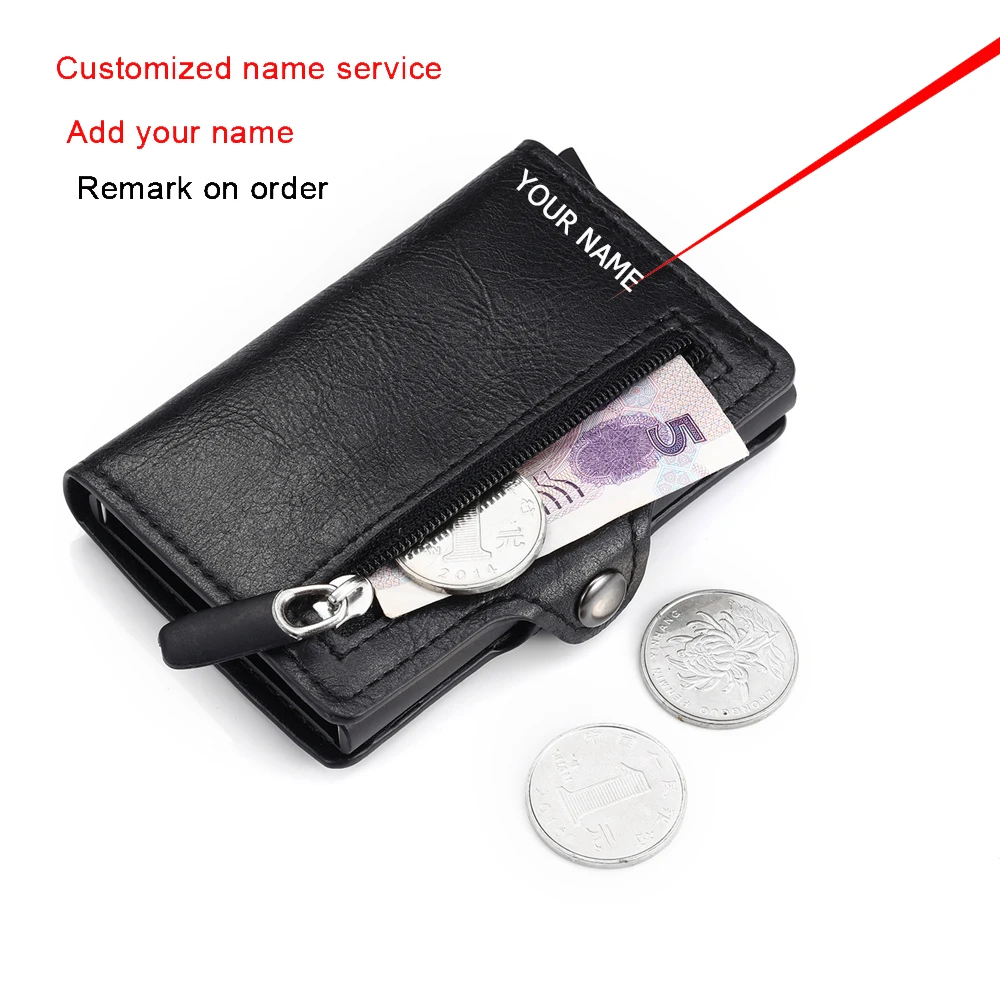 Кожаный кошелек с отделением для карт и Rfid-защитой для мужчин и женщин, тонкий маленький бумажник на молнии с кармашком для монет, чехол для 6 карт