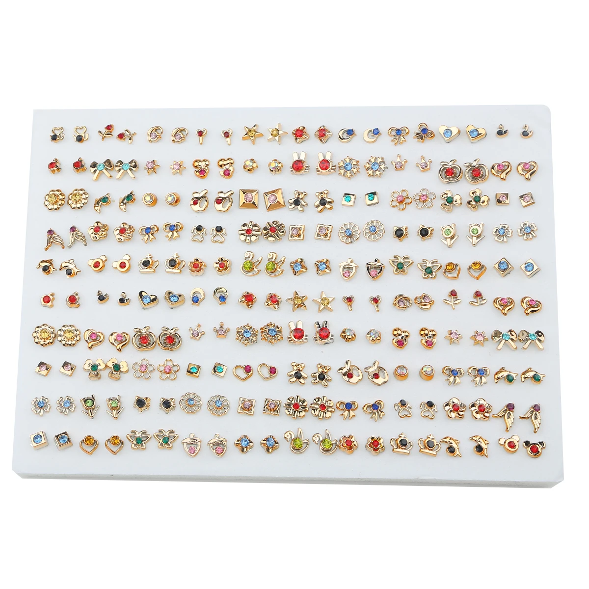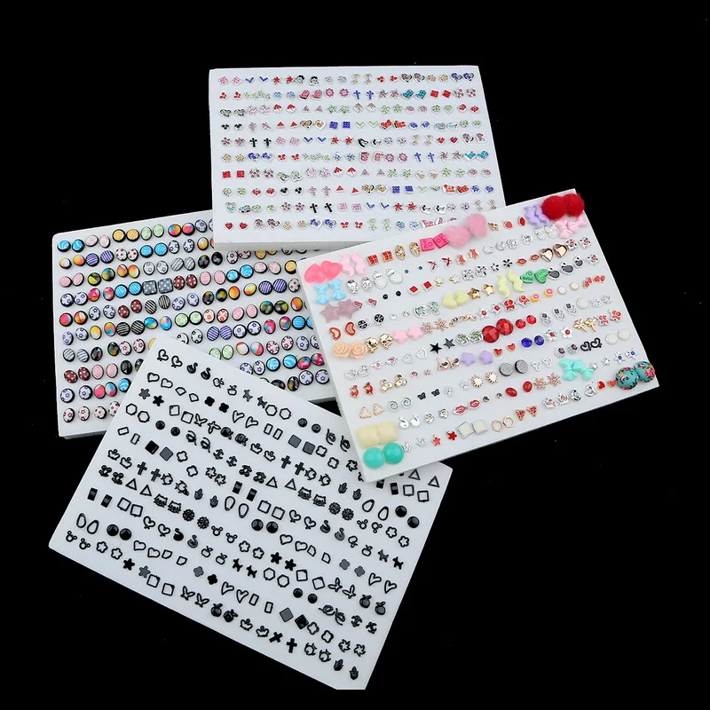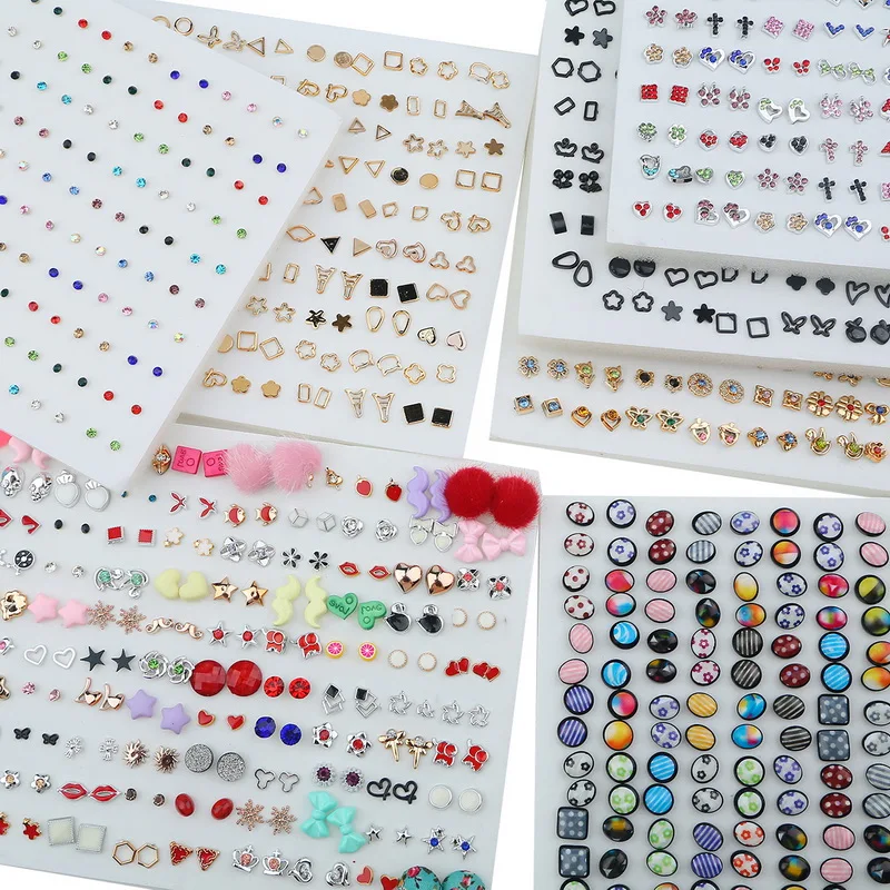 Набор серег-гвоздиков с цветными фруктами, цветами, сердцами, звездами, кристаллами, маленькие пластиковые серьги геометрической формы в виде короны для женщин и девочек, ювелирные изделия, 100 пар