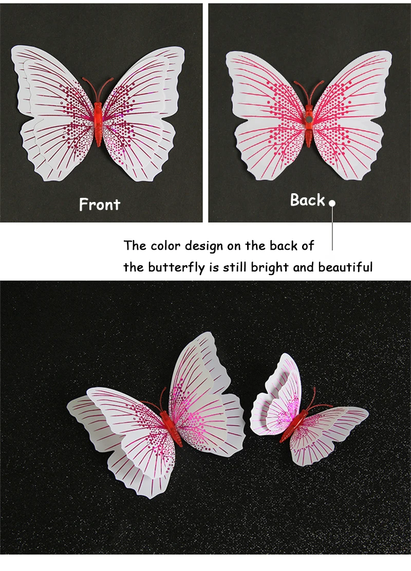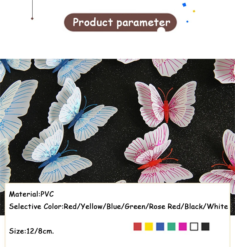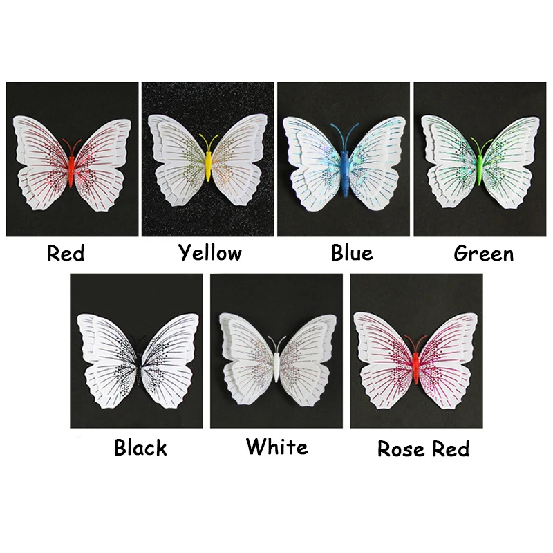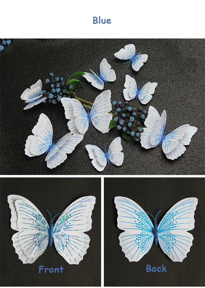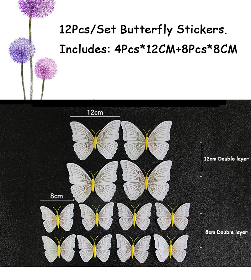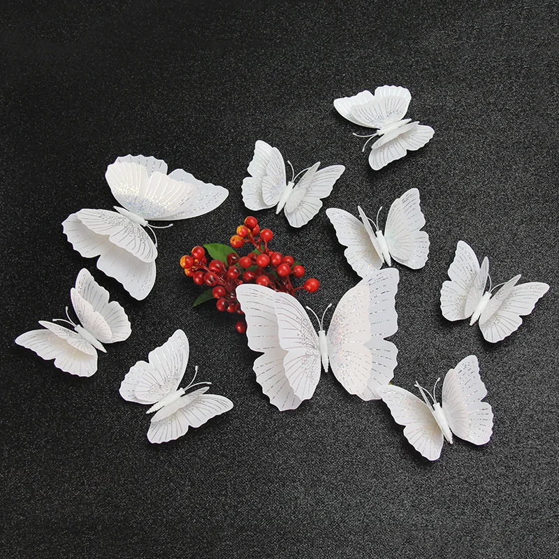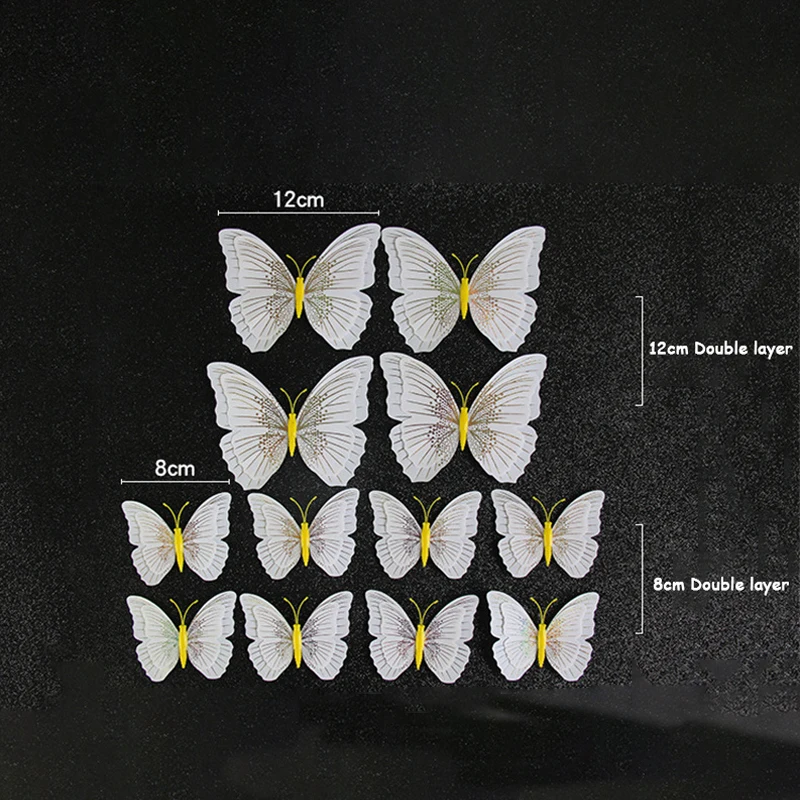 12 шт. двухслойные 3D наклейки на стену в виде бабочек, домашний декор, бабочки для детской наклейки на холодильник, Бесплатный клей