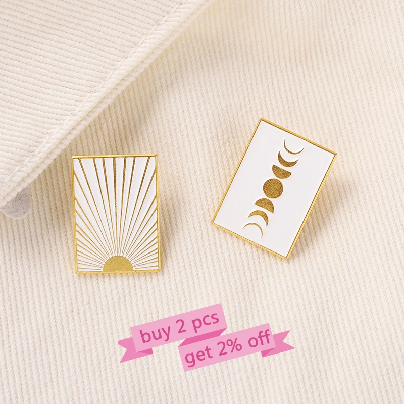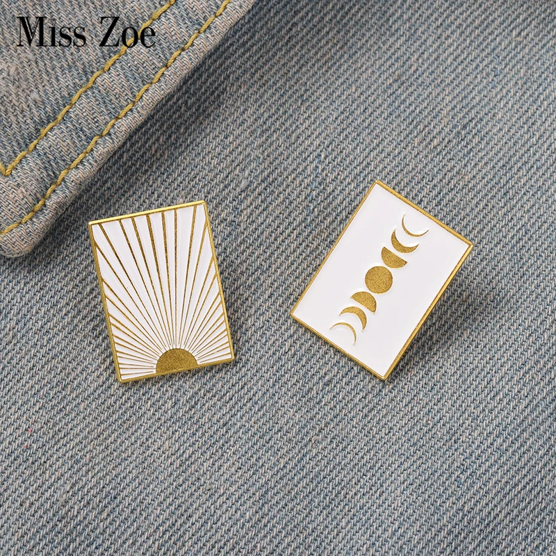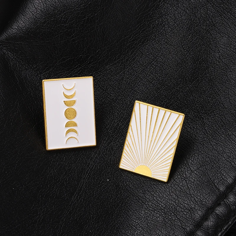 Брошь металлическая с эмалью в форме Солнца и Луны, золотая линия, ...