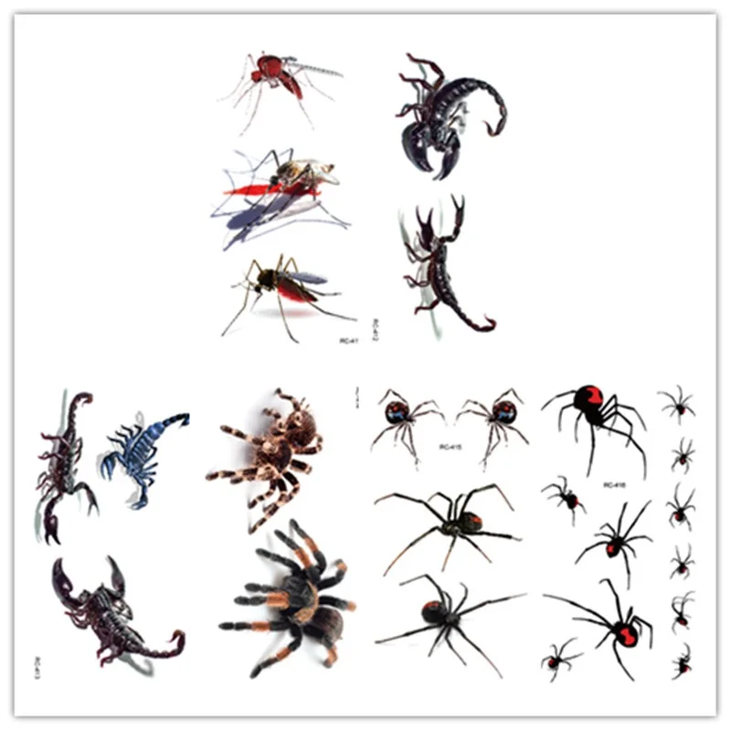 Жуткий паук в форме скорпиона, комаров, Хэллоуина, праздника, вечеринки, сделай сам, 3D стерео татуировка, наклейка s 6 стилей на выбор, водная переводная наклейка