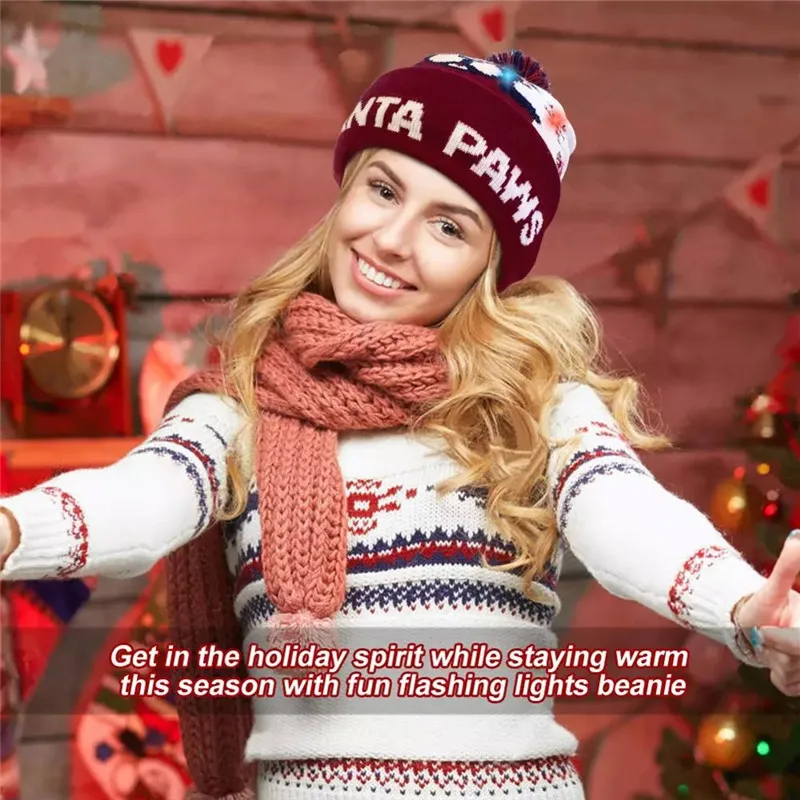 Вязаная светодиодная Рождественская шапка, рождественские шапки, вязаная шапка, рождественский подарок, теплая шапка с подсветкой, вязаная шапка для детей