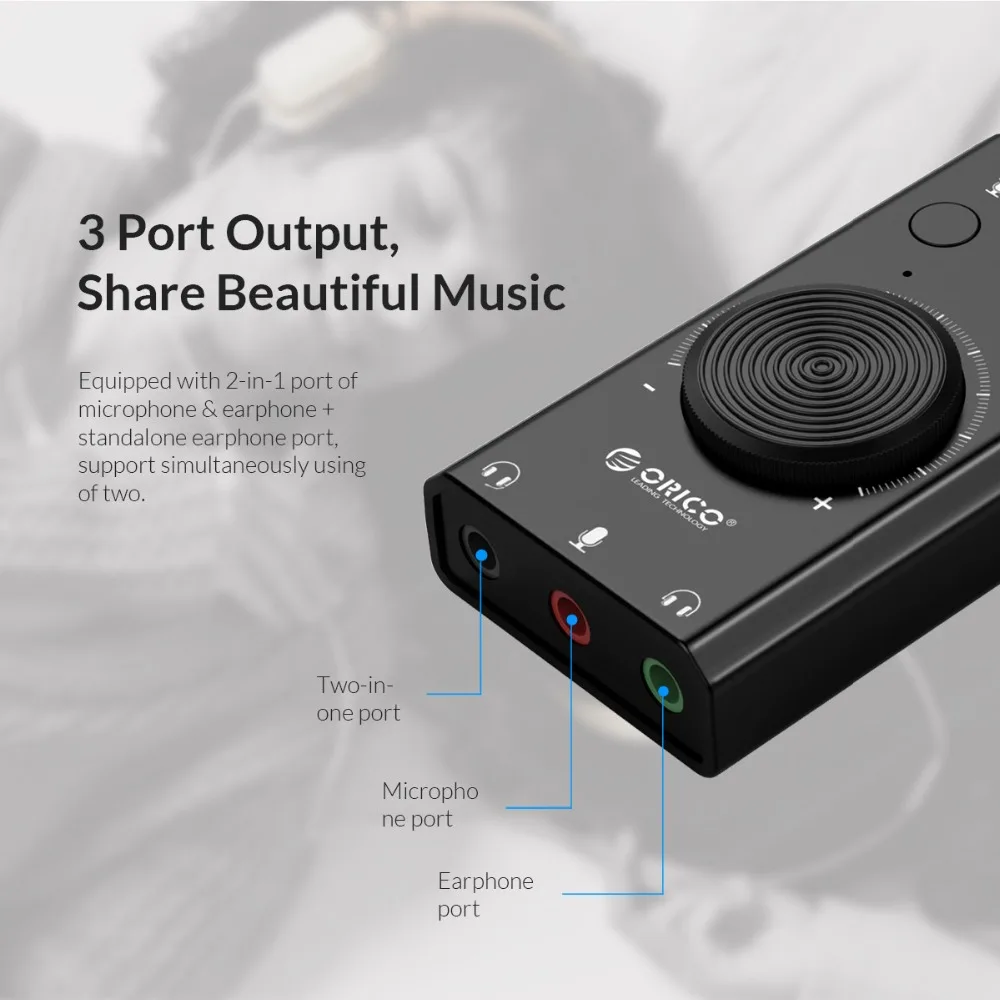 (1). Поврежденный или неисправный Встроенный адаптер звуковой карты замените его на внешний адаптер звуковой карты ORICO. Это улучшит ваши впечатления при прослушивании музыки, просмотре фильмов или игре. (2). 3,5-миллиметровый интерфейс для наушников или микрофона вашего устройства перестал работать, или на ваших устройствах нет интерфейса для наушников или микрофона. Он может расширить на 3 выхода для вашего устройства. (3). Используйте адаптер внешней звуковой карты, если вам нужно подключить к компьютеру более одного микрофона или наушников. Вы можете испытать более высокий уровень звуковых эффектов через этот продукт. (4). Вход разъема микрофона и комбинированного разъема микрофона/наушников поддерживает только моно