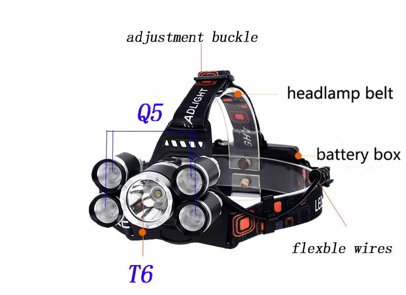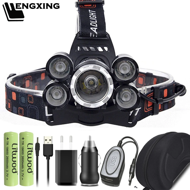 Налобный фонарь T6 с 5 светодиодный, уличный фонарь с аккумулятором...