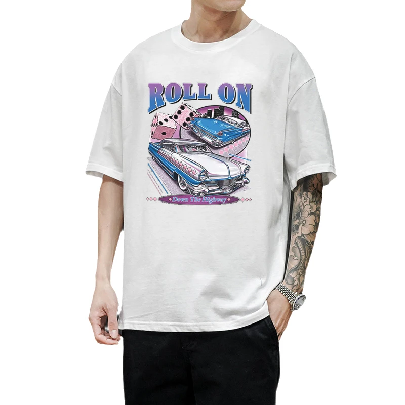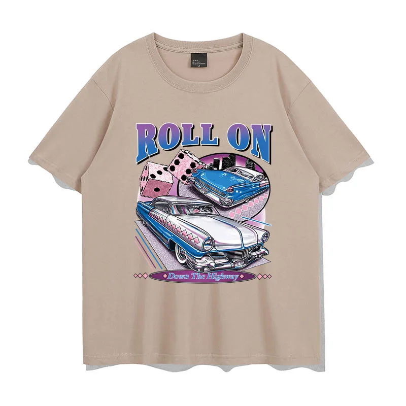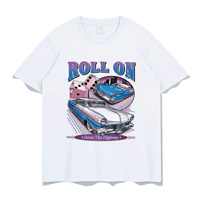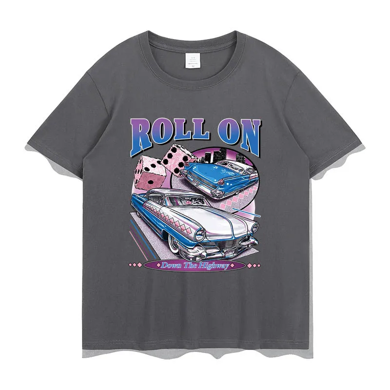 Рулонная Футболка с принтом автомобиля, Модные Винтажные Стильные повседневные женские и мужские топы, летняя уличная одежда, Мультяшные футболки унисекс