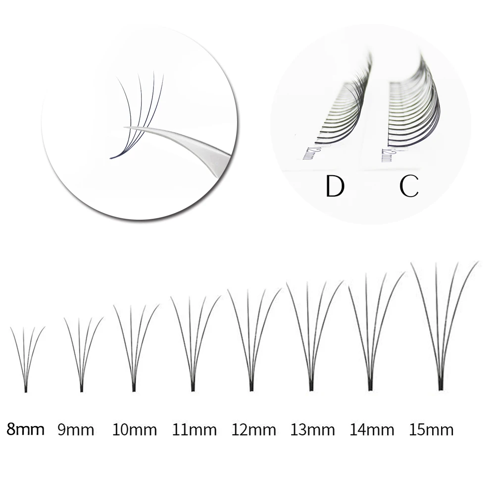 Накладные ресницы Cluster 3D 4D 5D, длинный Веер-Веер для наращивания ресниц 8,9,10,11,12,13,14 мм, длина C D, изгиб 0,07, толщина 0, 10