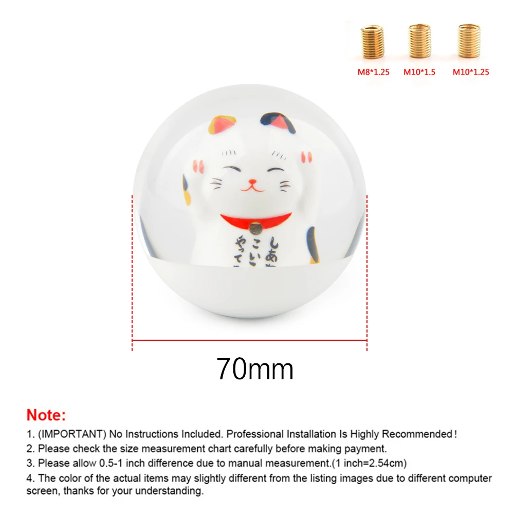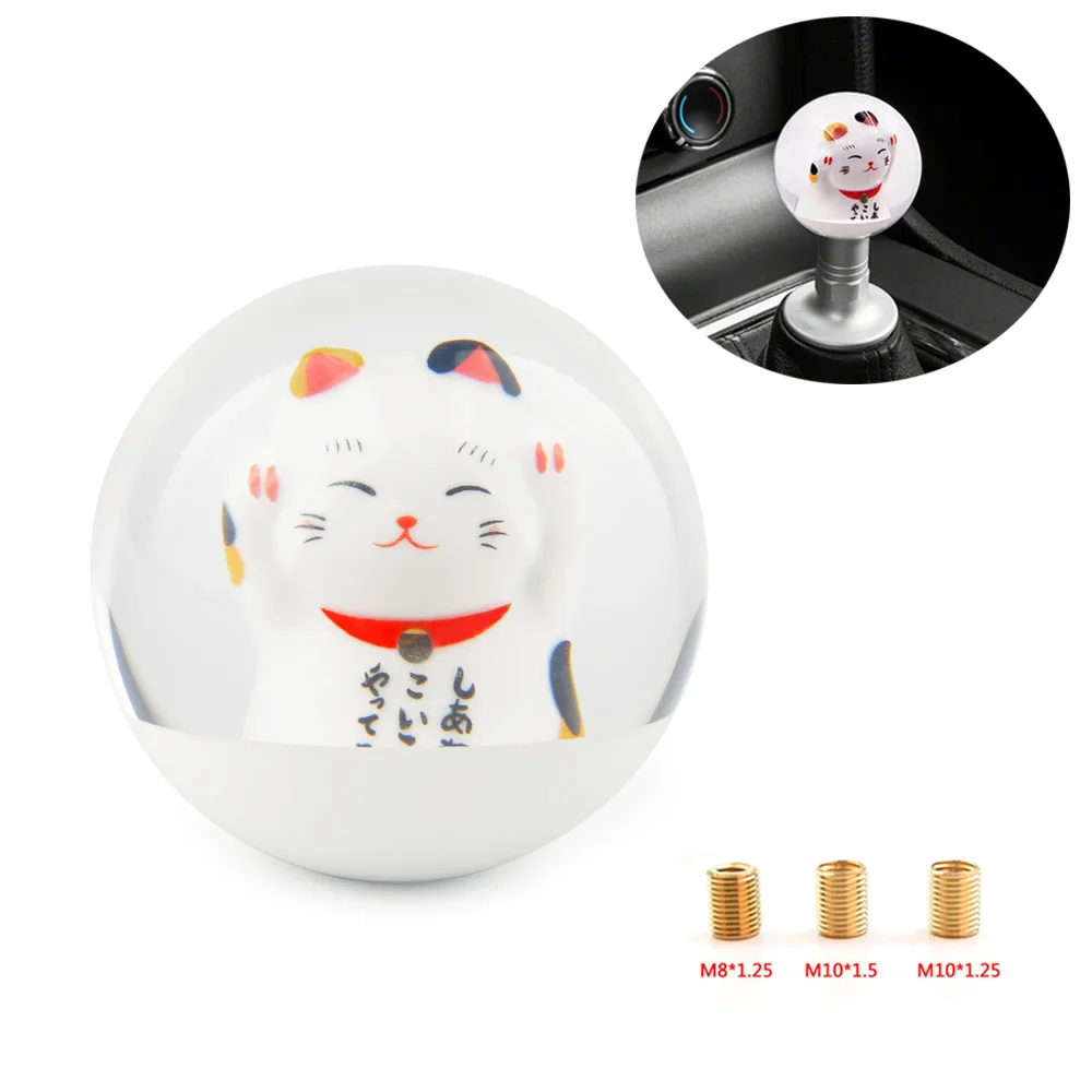 Универсальная Прозрачная Круглая ручка переключения передач 70 мм JDM Lucky Cat с адаптерами