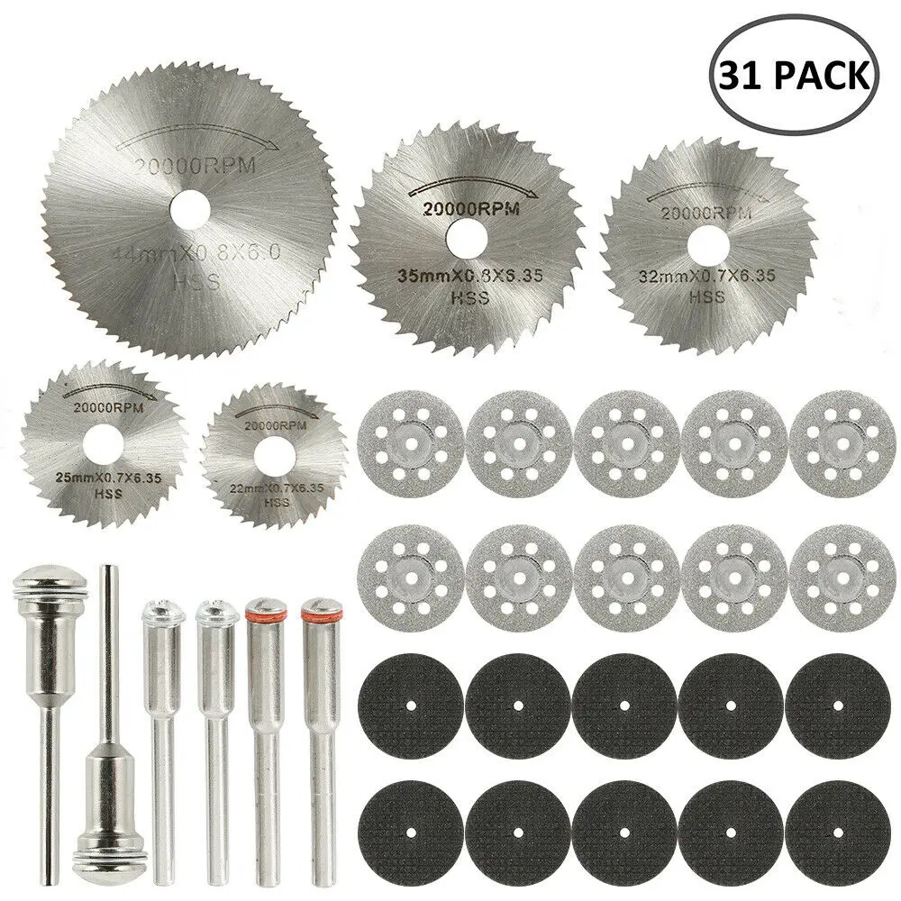 31x мини алмазные режущие диски из быстрорежущей стали, набор лезвий для сверл Dremel, роторный + инструмент, аксессуары для угловой шлифовальной машины, насадка для шлифовки