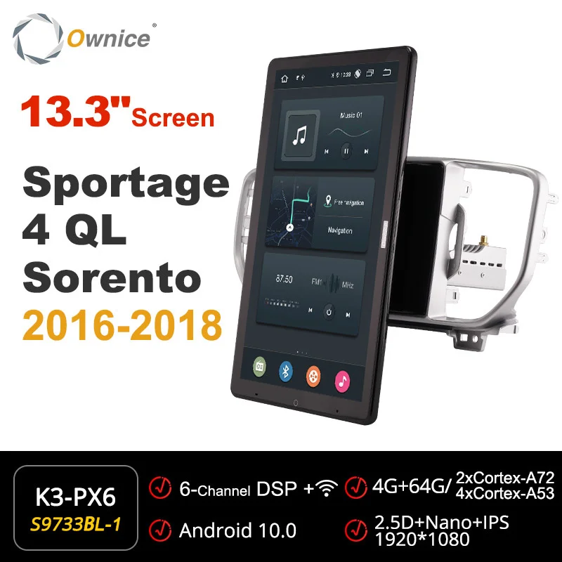Автомагнитола, 1920x1080, PX6, Android 10,0, для Kia Sportage 4 QL Sorento 2016-2018, 13,3 дюйма, IPS, поворотный