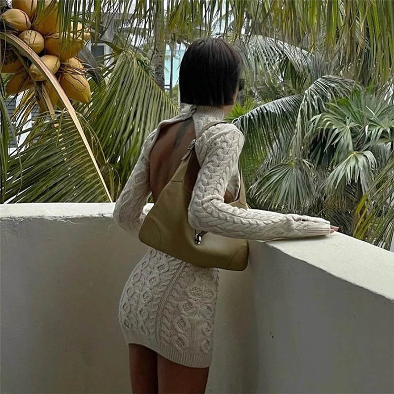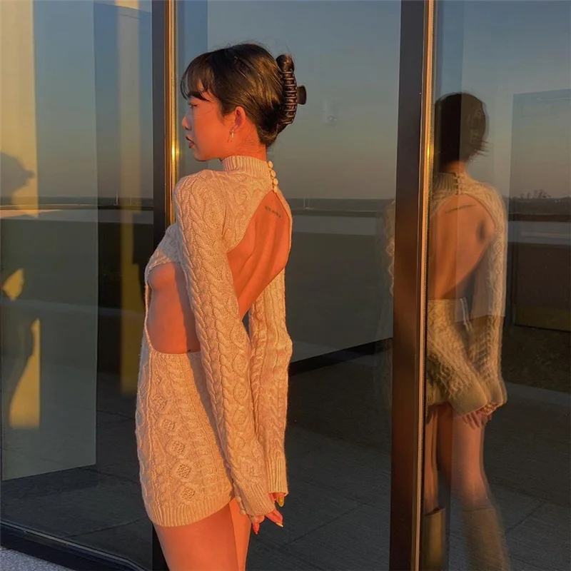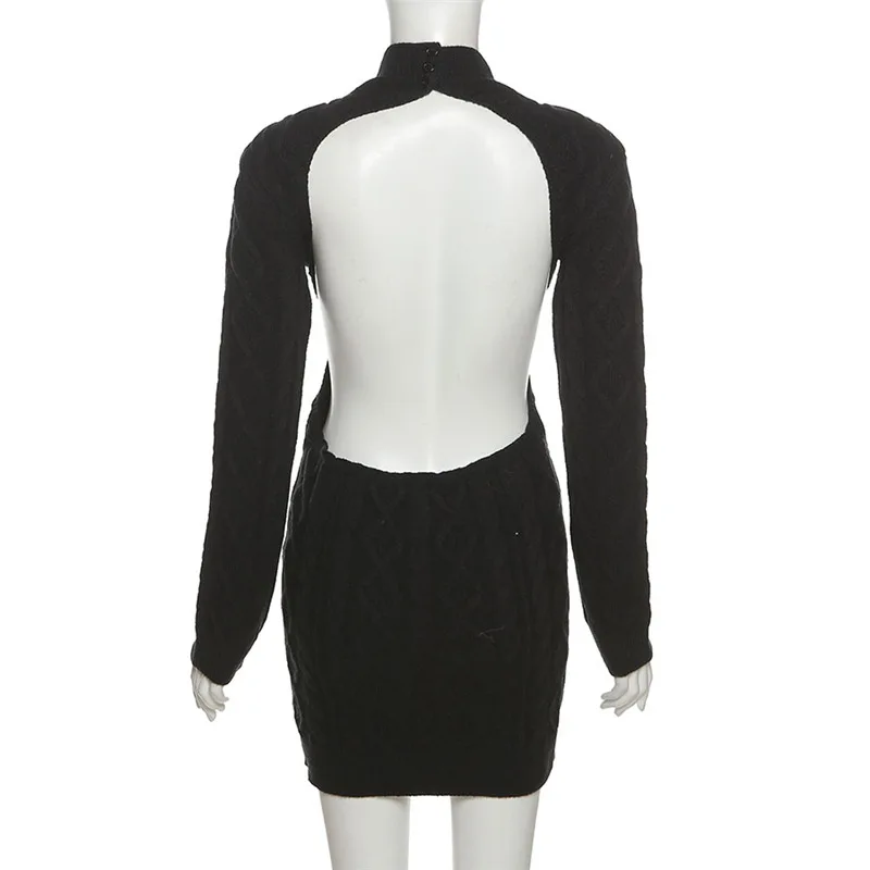 Женское трикотажное мини-платье Cryptographic, элегантное теплое платье с длинным рукавом и открытой спиной, Осень-зима