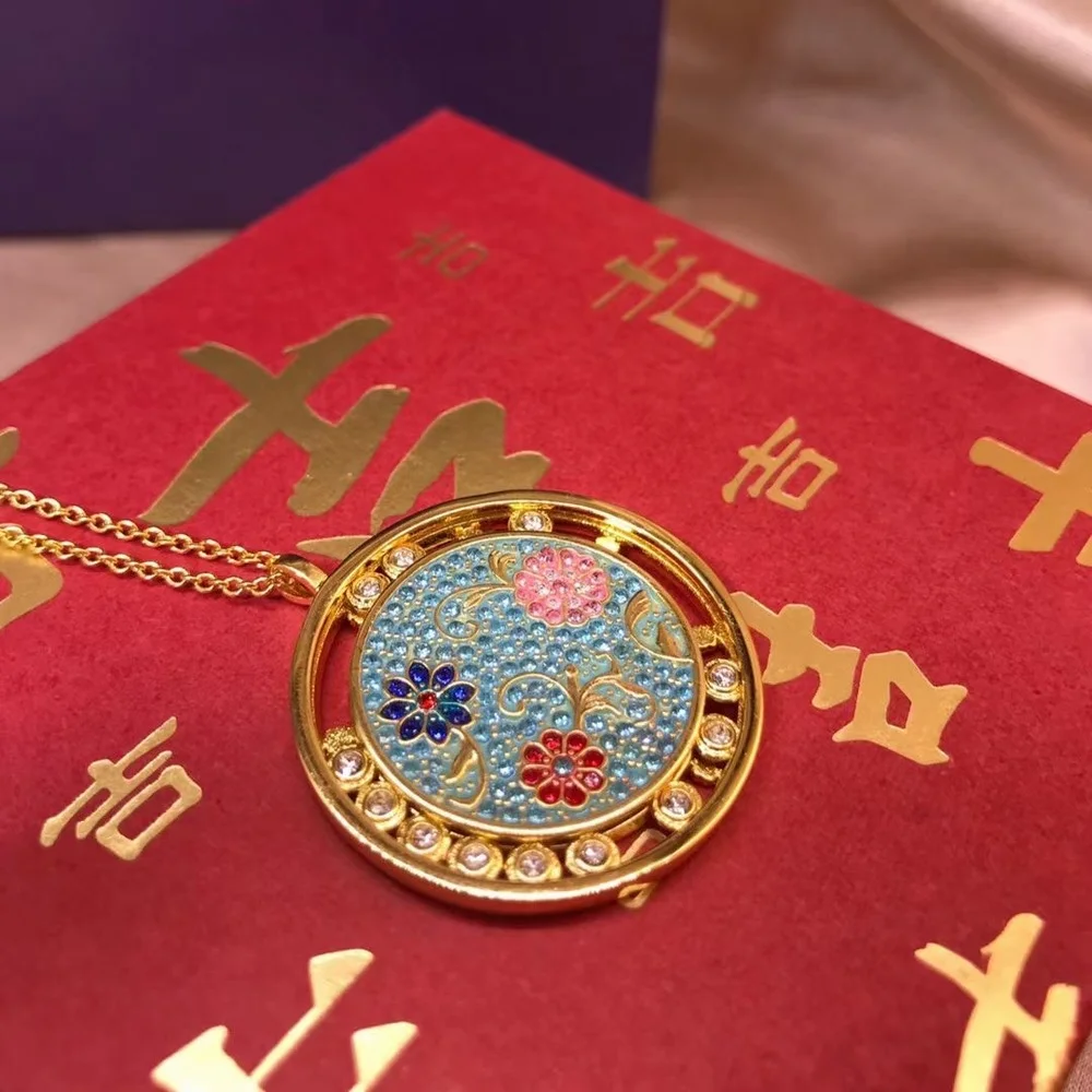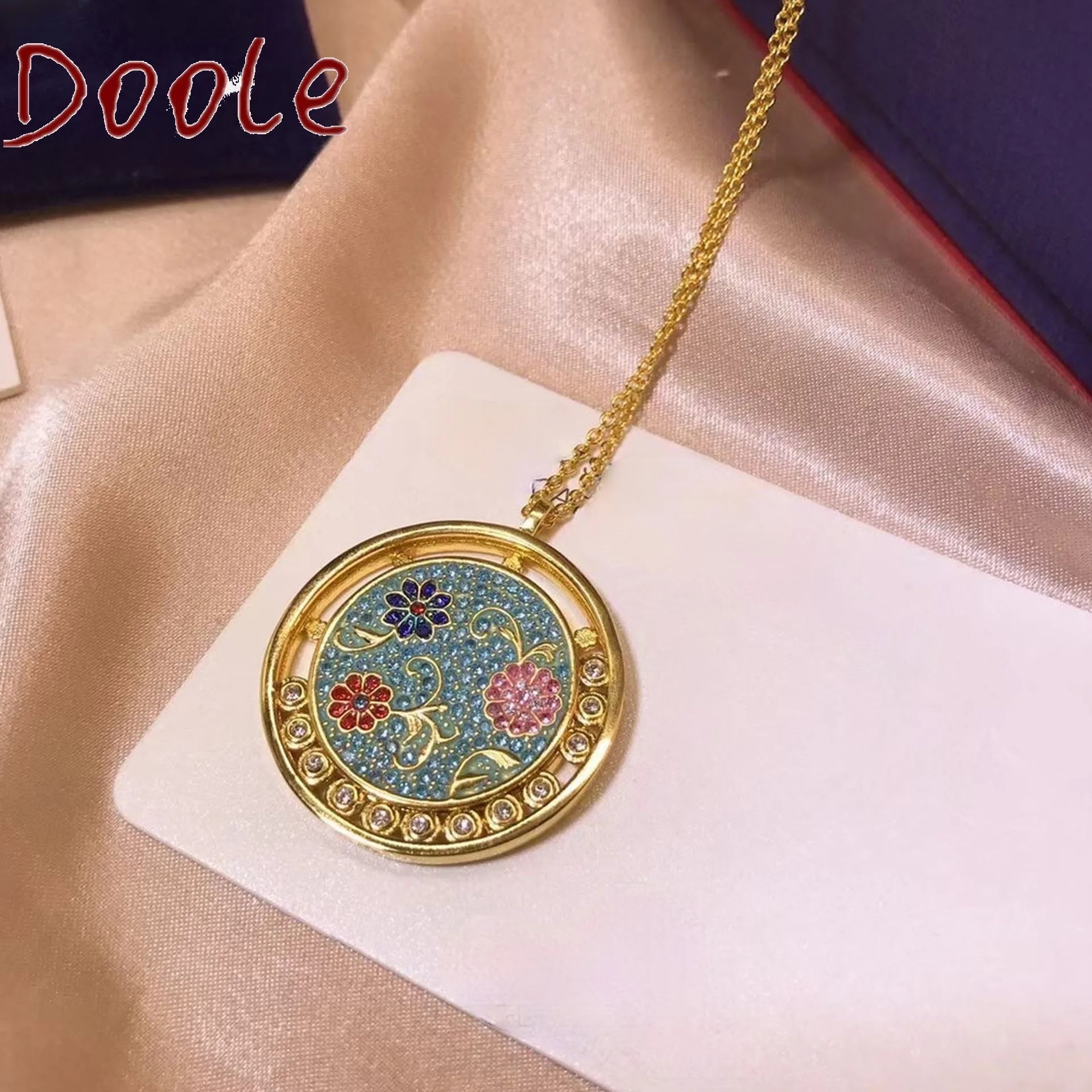 2021 SWA модные украшения высокого качества очарование круглый цветок Цепочка до ключиц синий круглый кристалл ожерелье женское романтический подарок