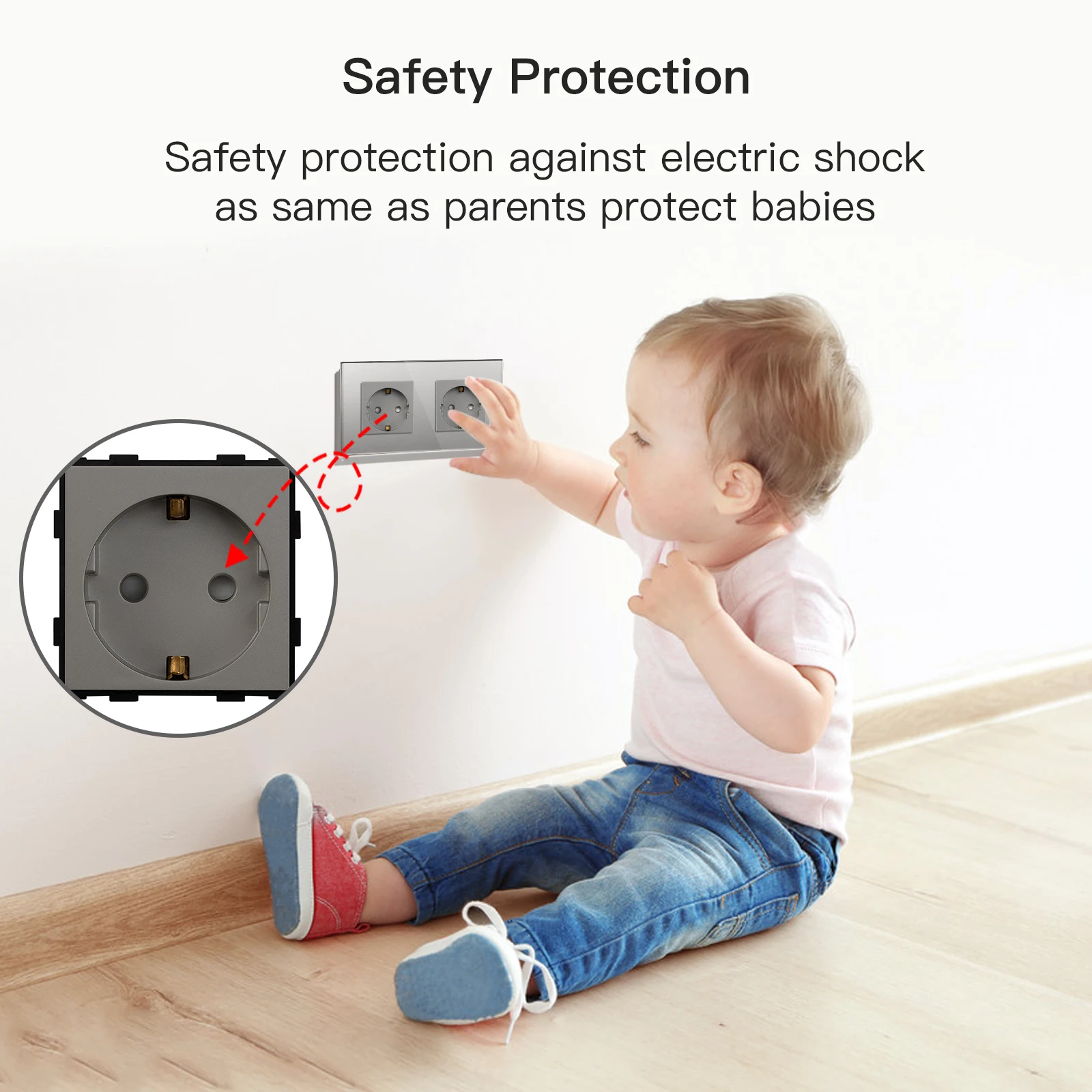 BSEED европейские настенные розетки, стеклянная панель, одиночная розетка, электрические двойные розетки, детская защита, тройная фоторозетка