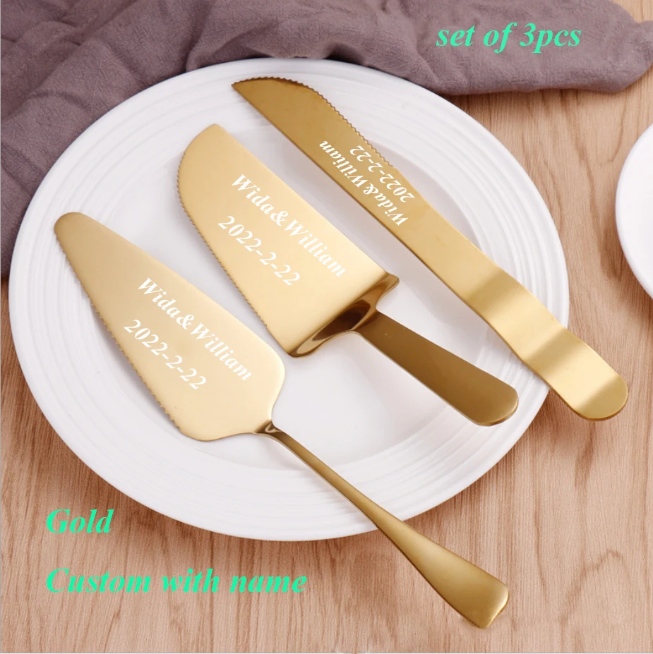 Десертные Кондитерские инструменты для выпечки 3 шт./компл., персонализированные Кондитерские инструменты из нержавеющей стали, набор ножей для свадебного торта, нож для пиццы из розового золота