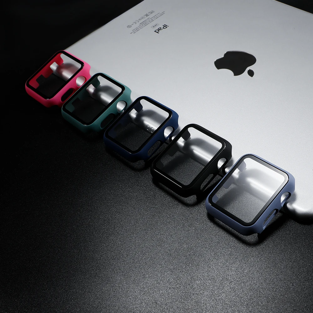 Стекло + чехол для Apple Watch Серия 6 5 4 3 SE 44 мм 40 мм, чехол для iWatch 42 мм 38 мм, защита экрана бампера + чехол для планшетов Apple watch