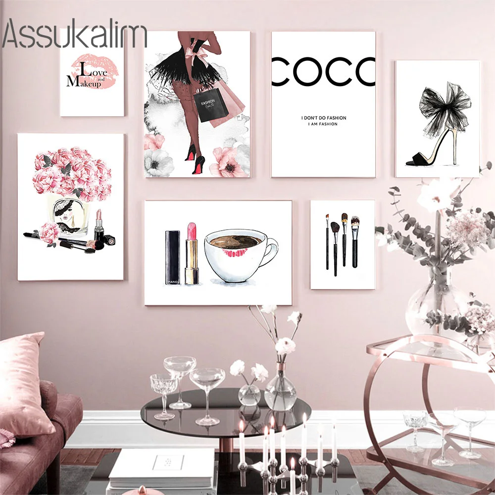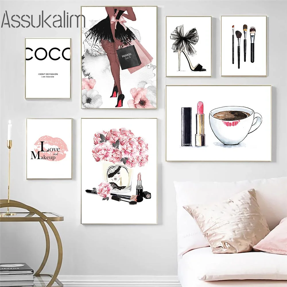 Модный холст художественный постер Помада Кисть для макияжа плакаты...