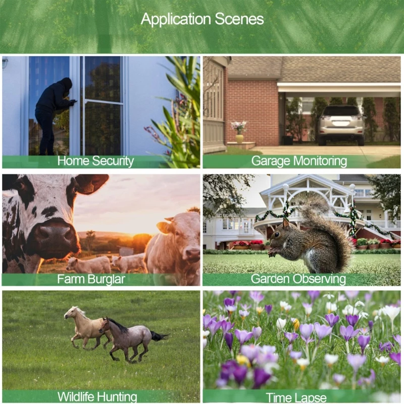 Можно использовать охотничью камеру для наблюдения за дикой природой и охоты, безопасности дома или офиса, наблюдения за фермой и других видов активного отдыха.